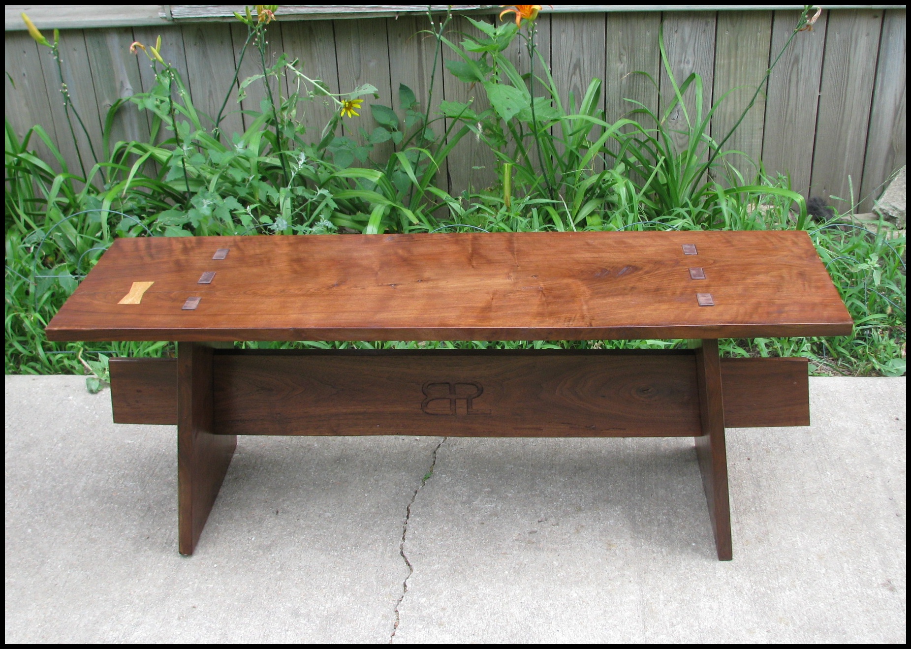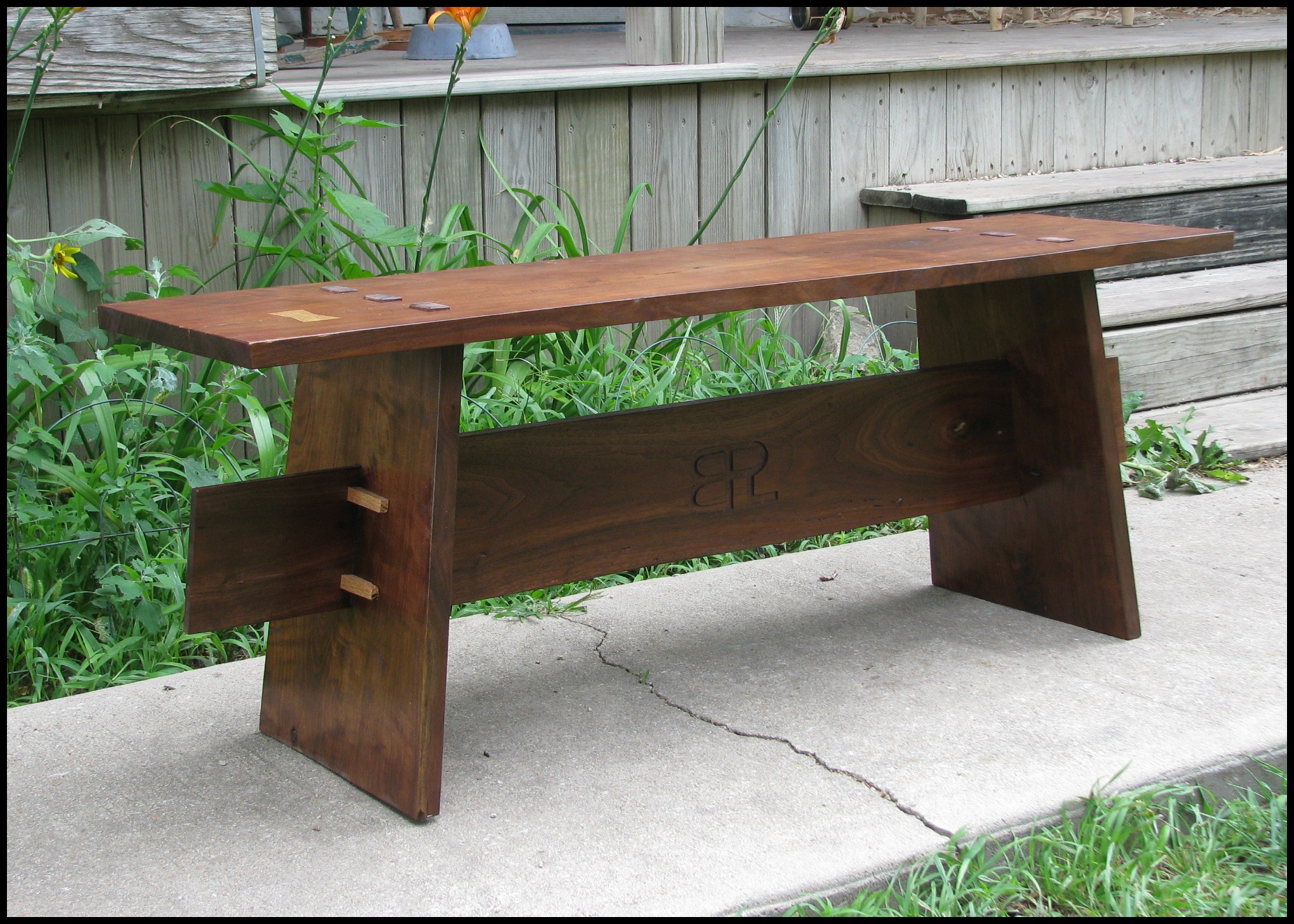Benches like this one can be built on request, though it is hard to come by walnut this wide in Kansas, so the price is some-what subject to availability of the lumber.  playbanjo@gmail.com