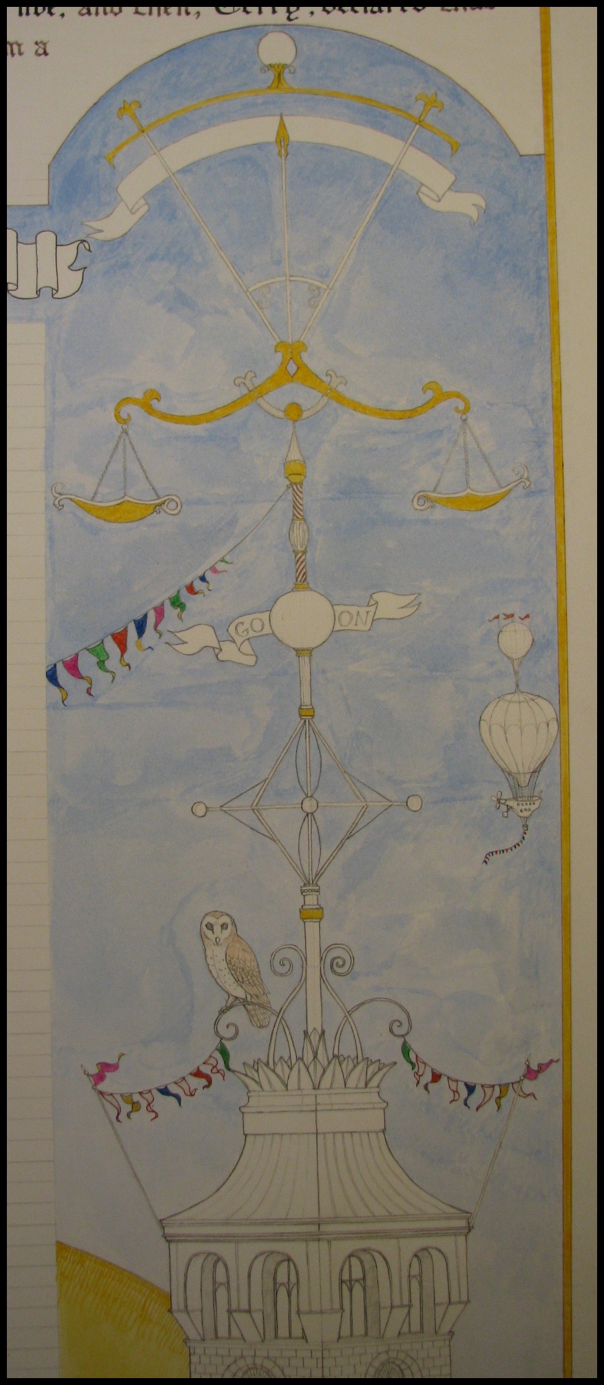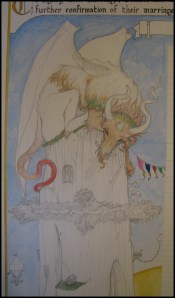 The marriage certificate that I was honored to do for my friends Genesis and Terry’s wedding. In the last picture you can see the signatures of all the attendees/witnesses. It is done in graphite, sumi ink, colored inks and watercolor on a smooth watercolor paper. The main picture and details are missing a few of the final touches of color which I negelcted to photograph.