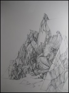 The drawing of Moses in the cleft of rock. Hopefully painting will begin this fall.