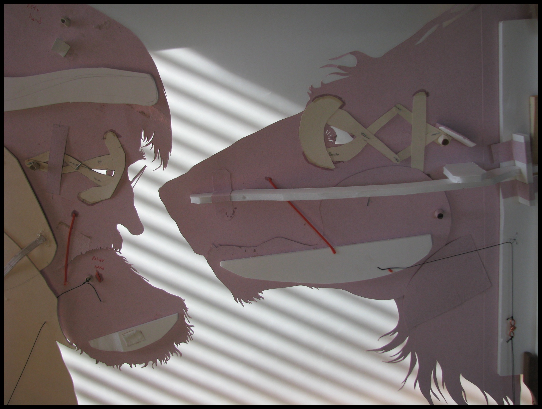 Shadow Puppet Mechanics A backstage view of John Beartrist Laceroot and Mystichearingus Wolf. The shadow screen set up on the work table for repairs and modifications. Share this: Click to share on Facebook (Opens in new window) Facebook Click to share on X (Opens in new window) X Click to share on Pinterest (Opens in new window) Pinterest Like Loading... Related