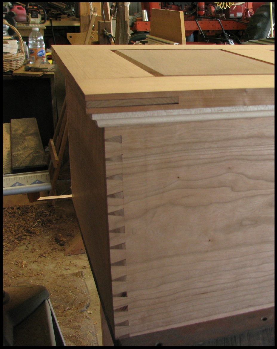Below are a few pictures of the frame and panel lid for the cherry and walnut hope chest.