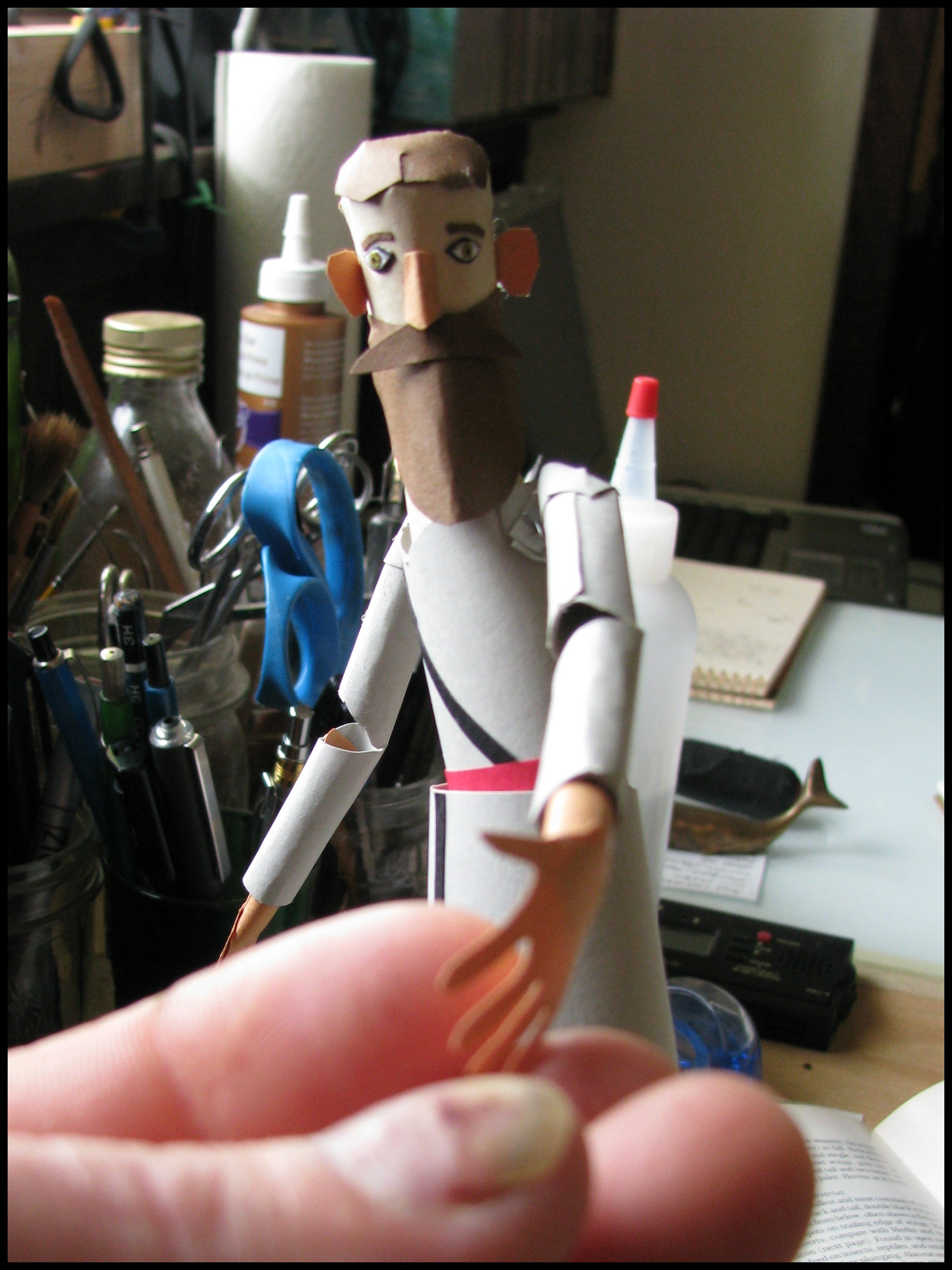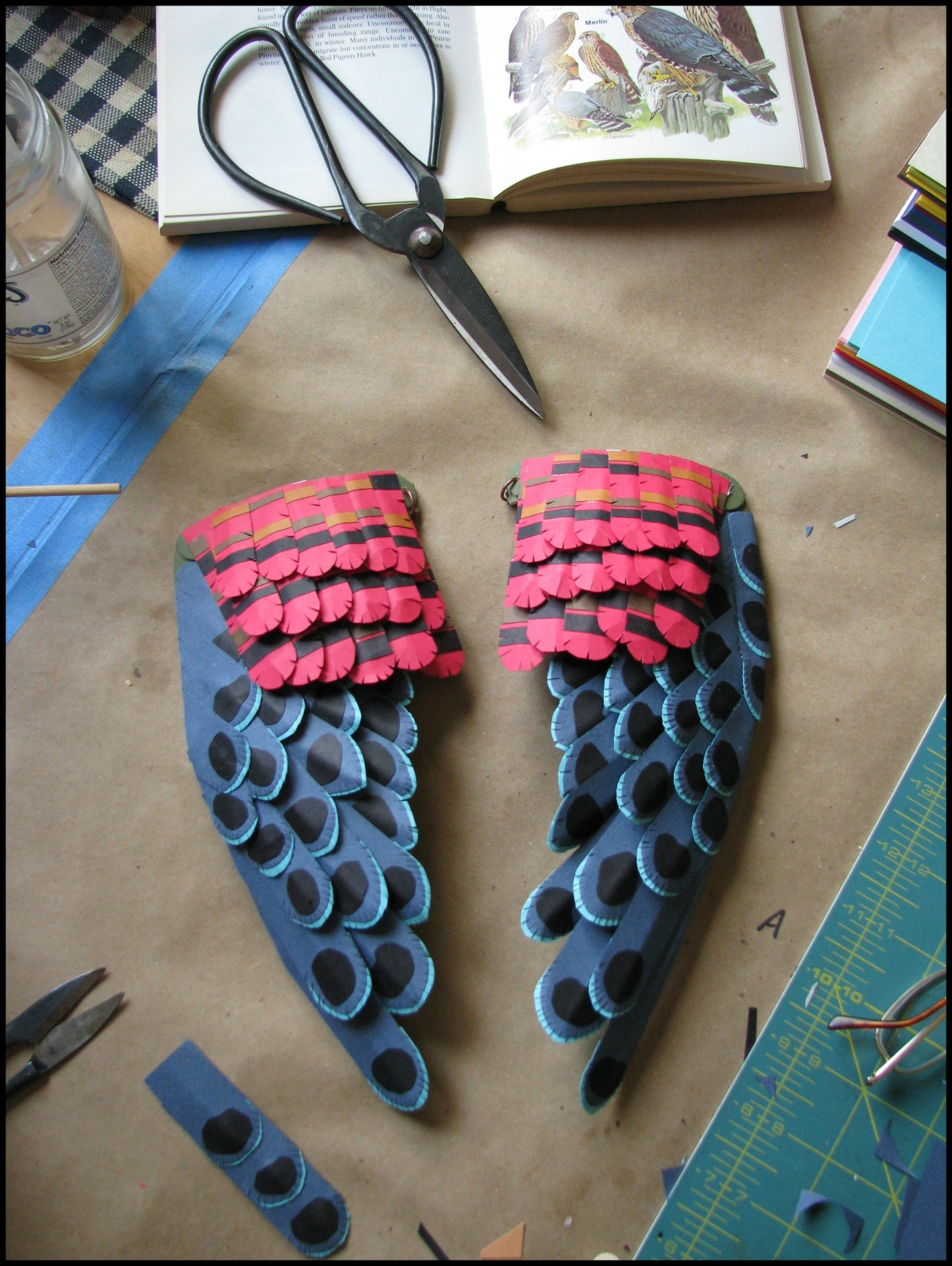 More paper engineering.  This time a paper kestrel puppet in progress.  Here is his head.  There is a lot of cutting and folding and gluing to develop the shape.