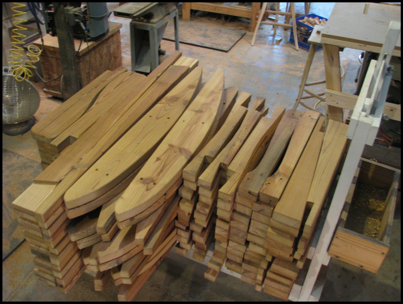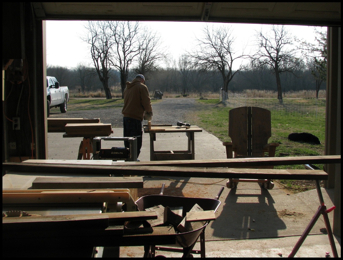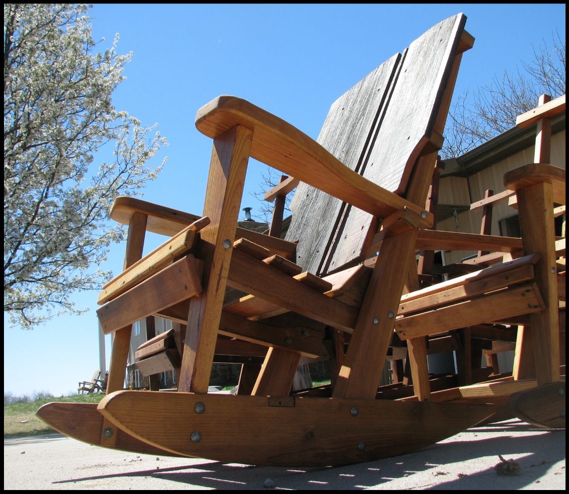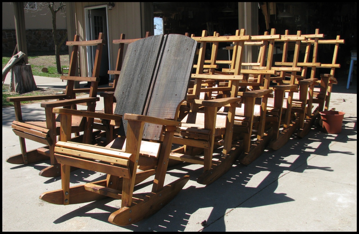 Below are photos from the past week and one-half, building a dozen rocking chairs with a friend of mine for the Bighorn River Lodge in Montana.  The lumber is from a centenarian barn destroyed by a tornado last year.