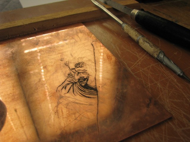 I love this one so far. It’s always a gift to work on a copper plate. Are you drawing with pencil on it first before you carve into it? Nice photos, too.