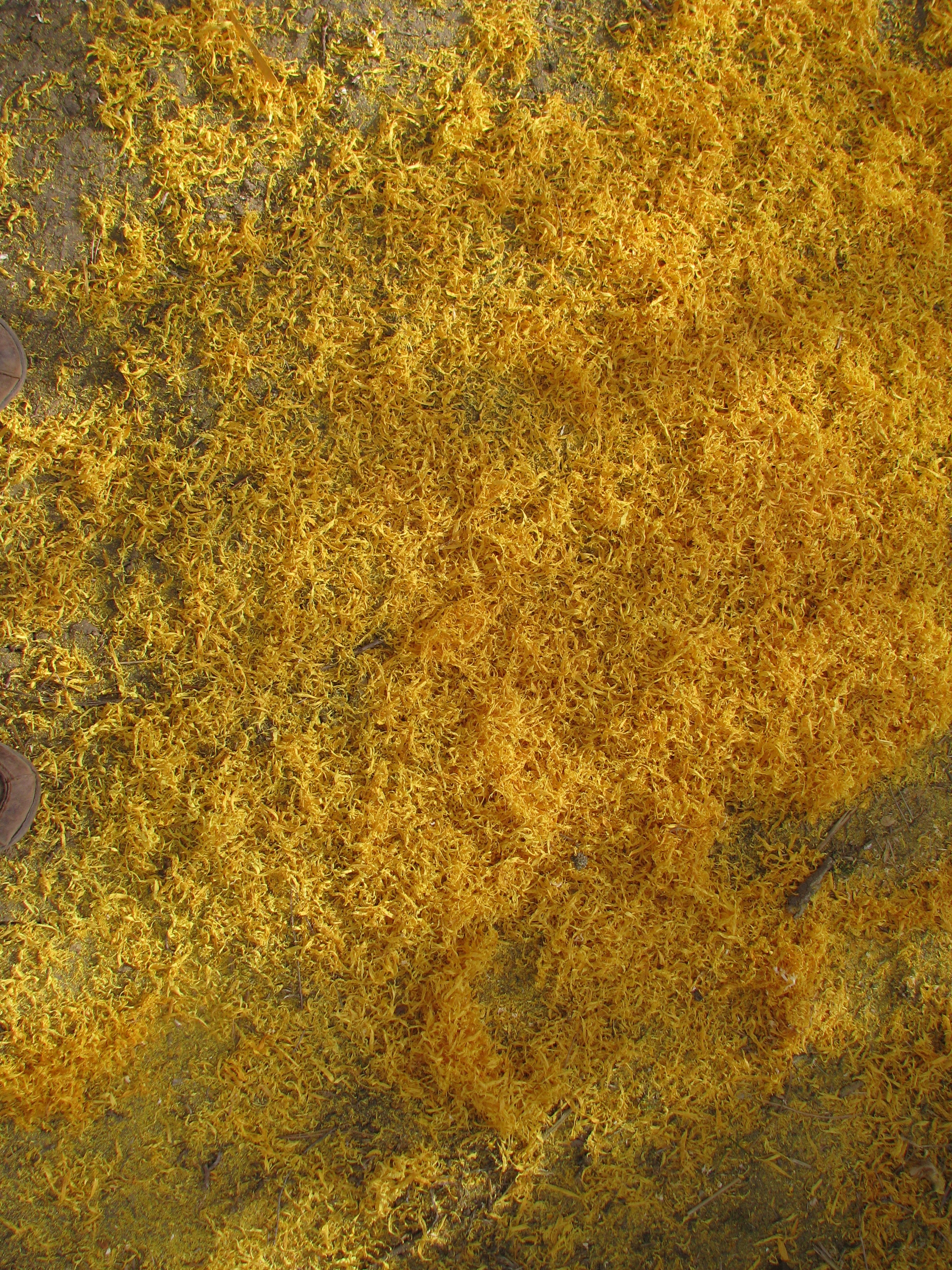 The bright yellow carnage of green Osage Orange (Maclura pomifera).