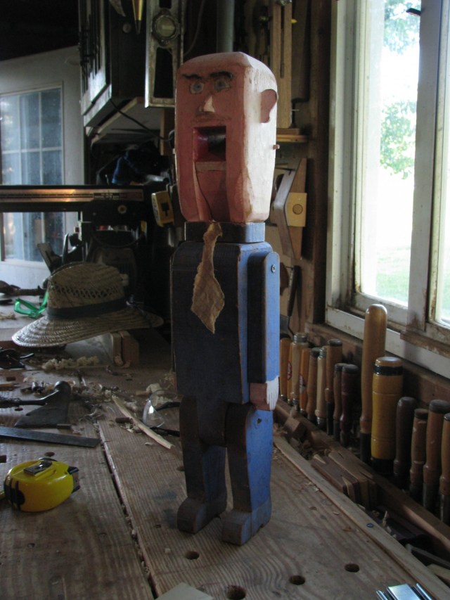My son asked, “can you get that little man down?”  He sits on a shelf in my workshop.