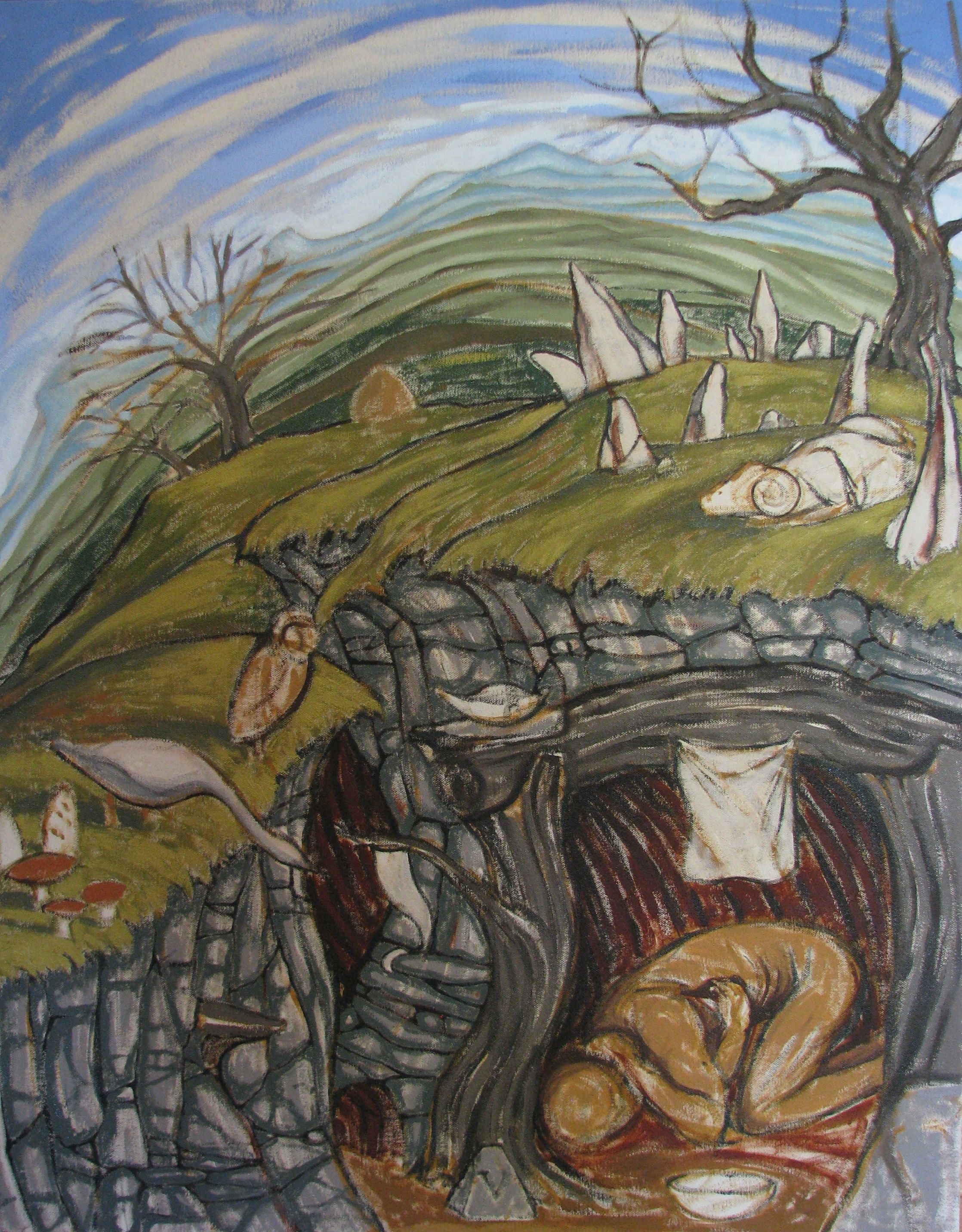 Slow refinement upon the underpainting of Job in the Cave of the Erth.
