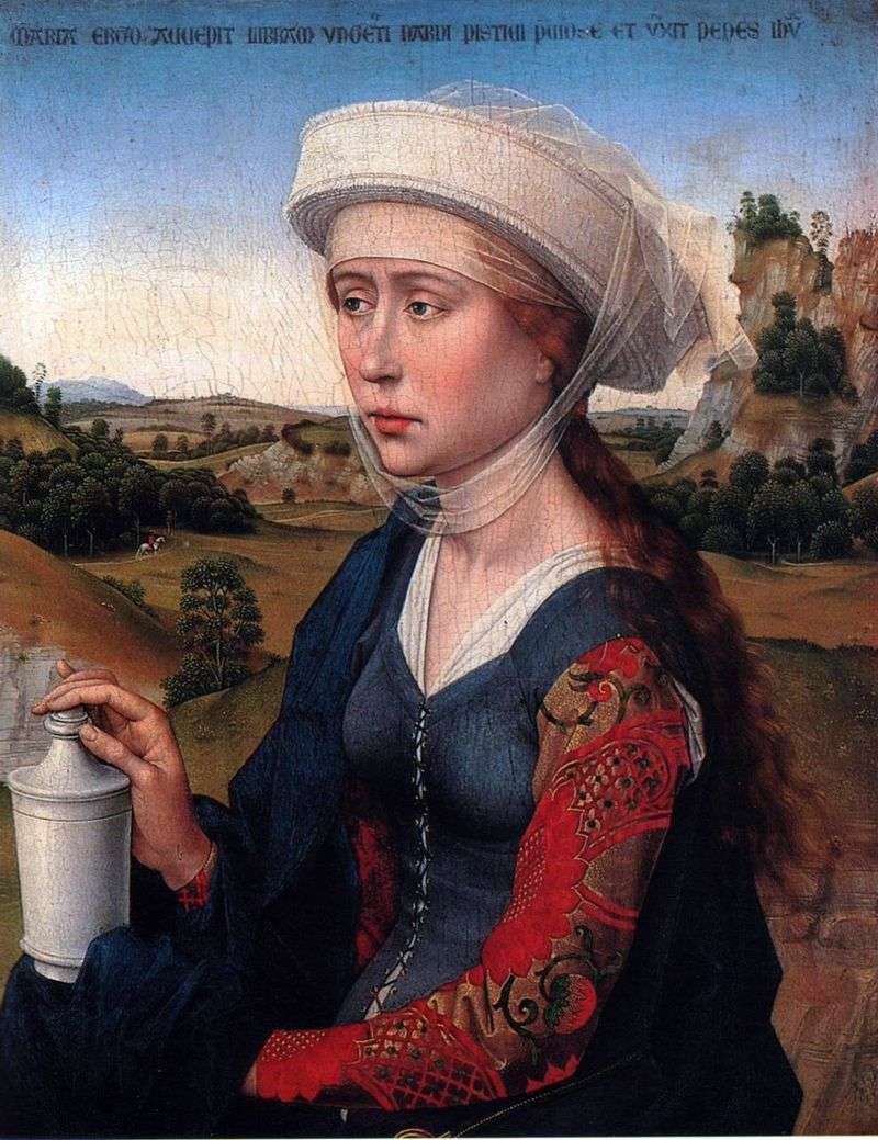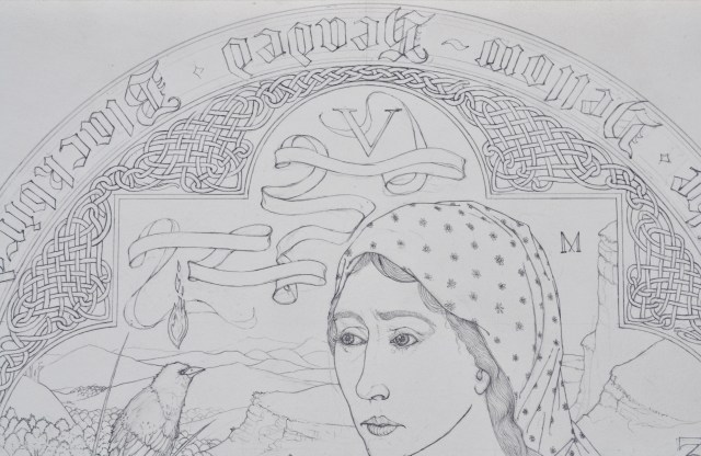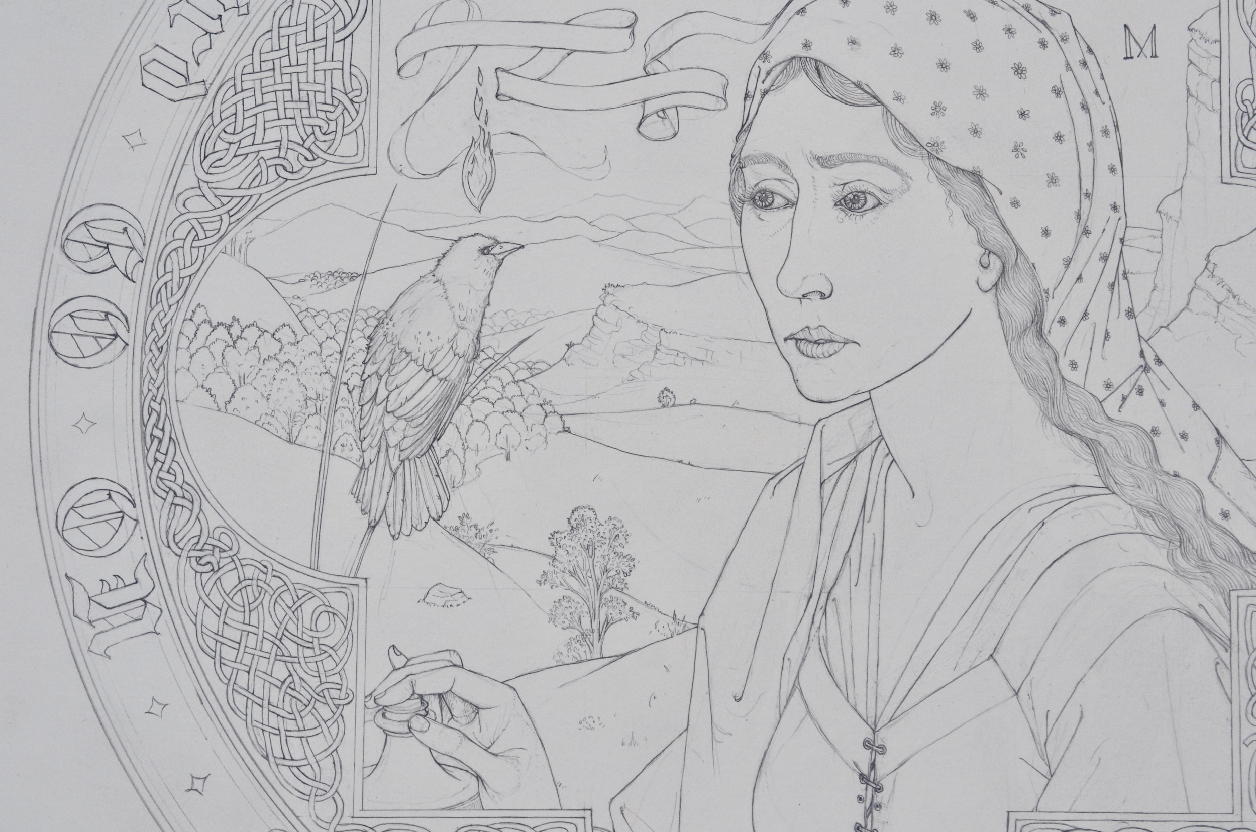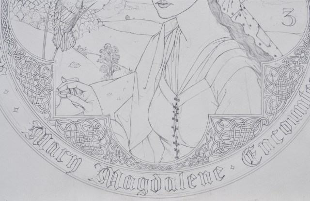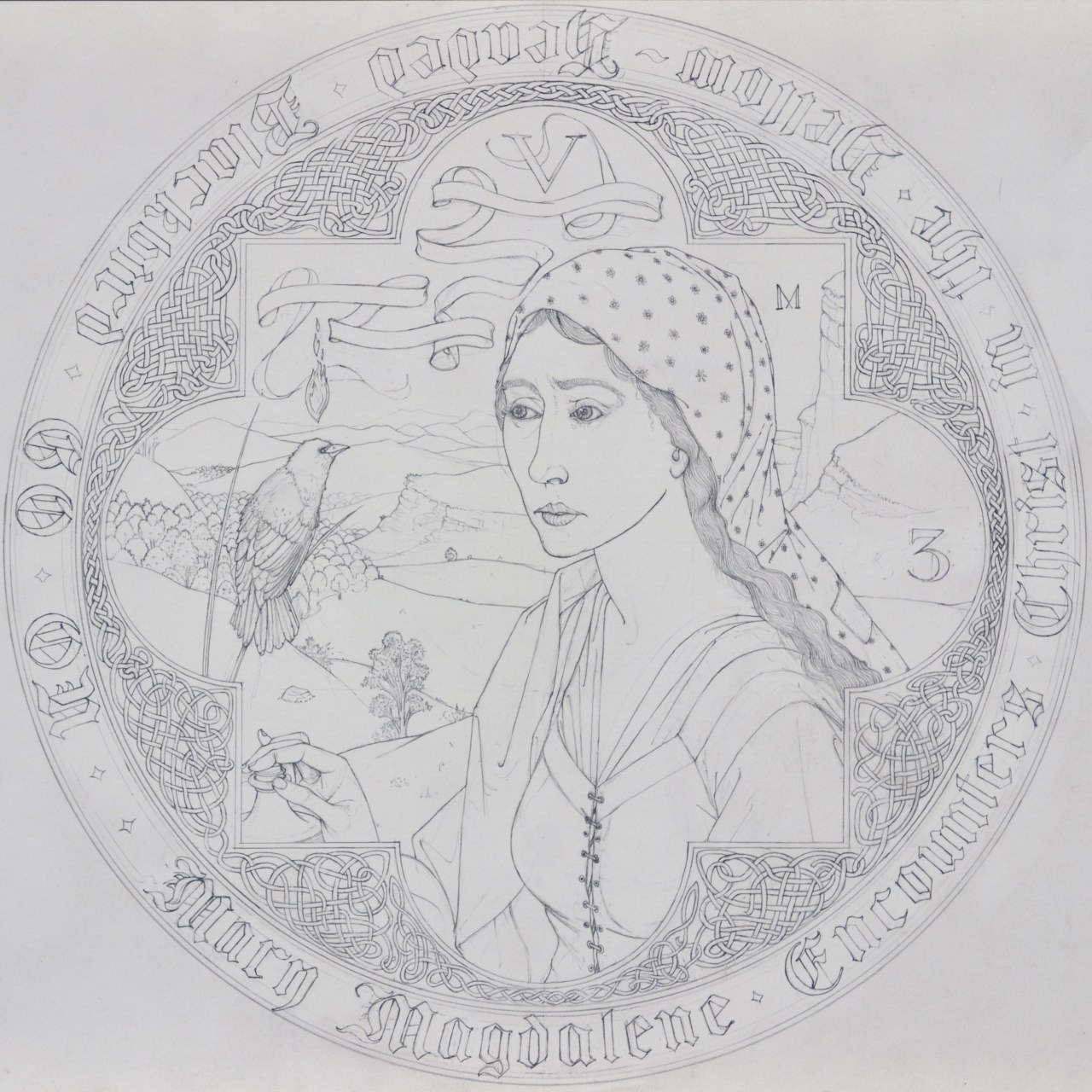 Mary Magdalene Encounters Christ in the Yellow Headed Blackbird, (after Rogier Van der Weyden’s Mary Magdalene from right hand panel of the Braque Triptych, Louvre) graphite on paper, 2020