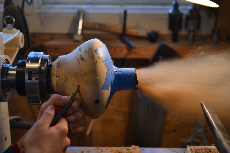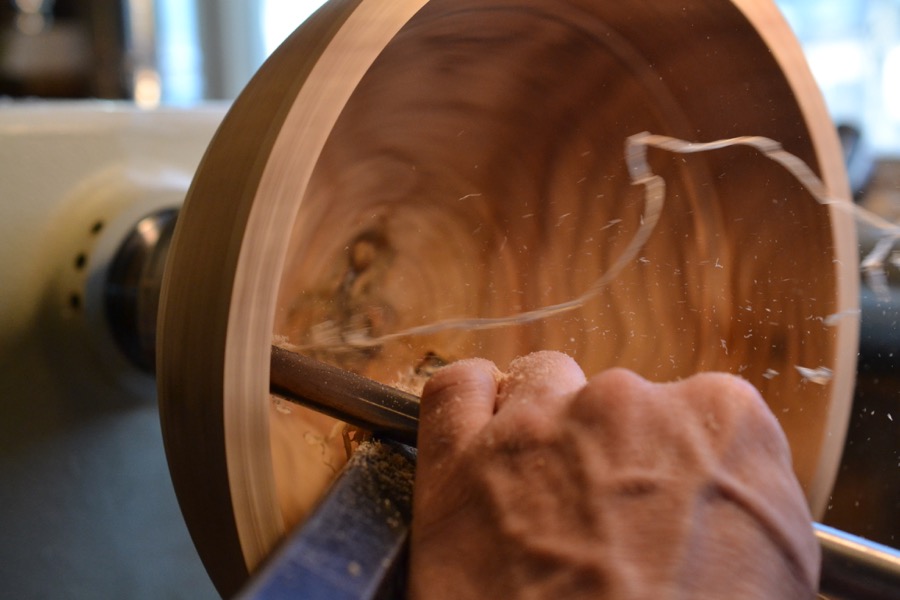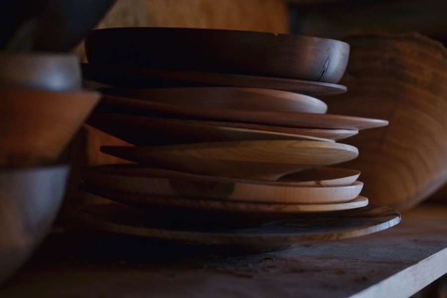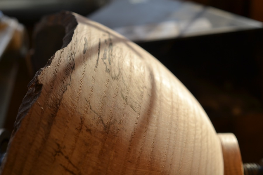 Five bowls turned from part of a salvaged Ash tree from Peabody, Kansas. The tree was well over one hundred years old and was nearly five feet in diameter. Most of it we milled into lumber but some was set aside for making wooden bowls. It is a humbling and awe-filled experience getting to work with material from such a being as was this tree.