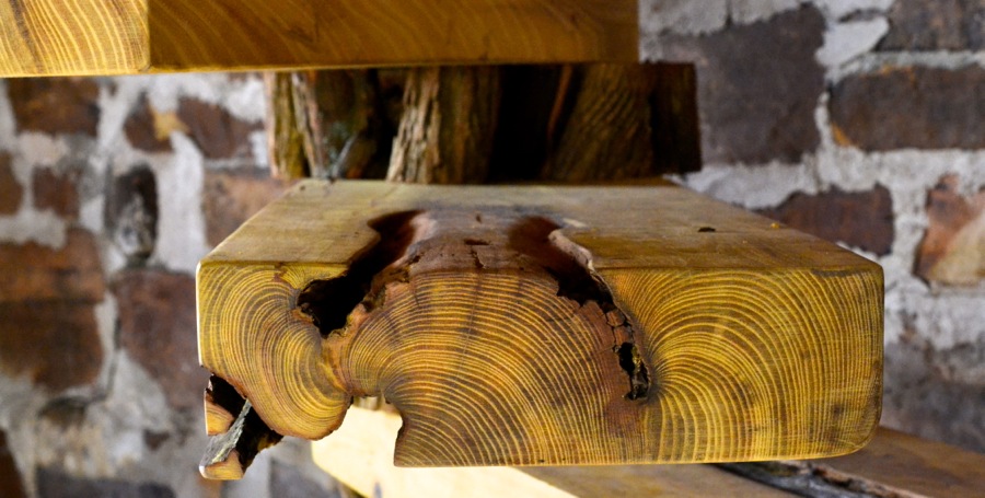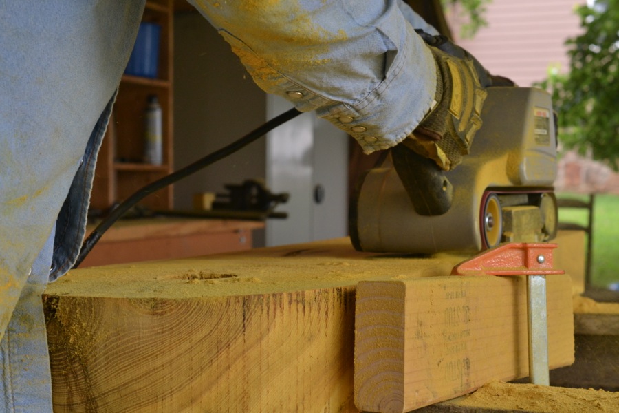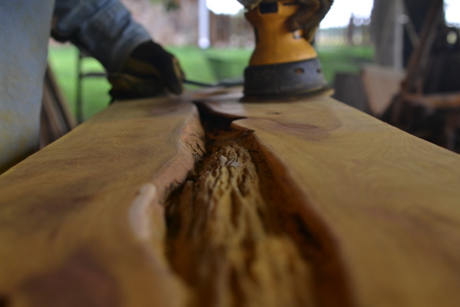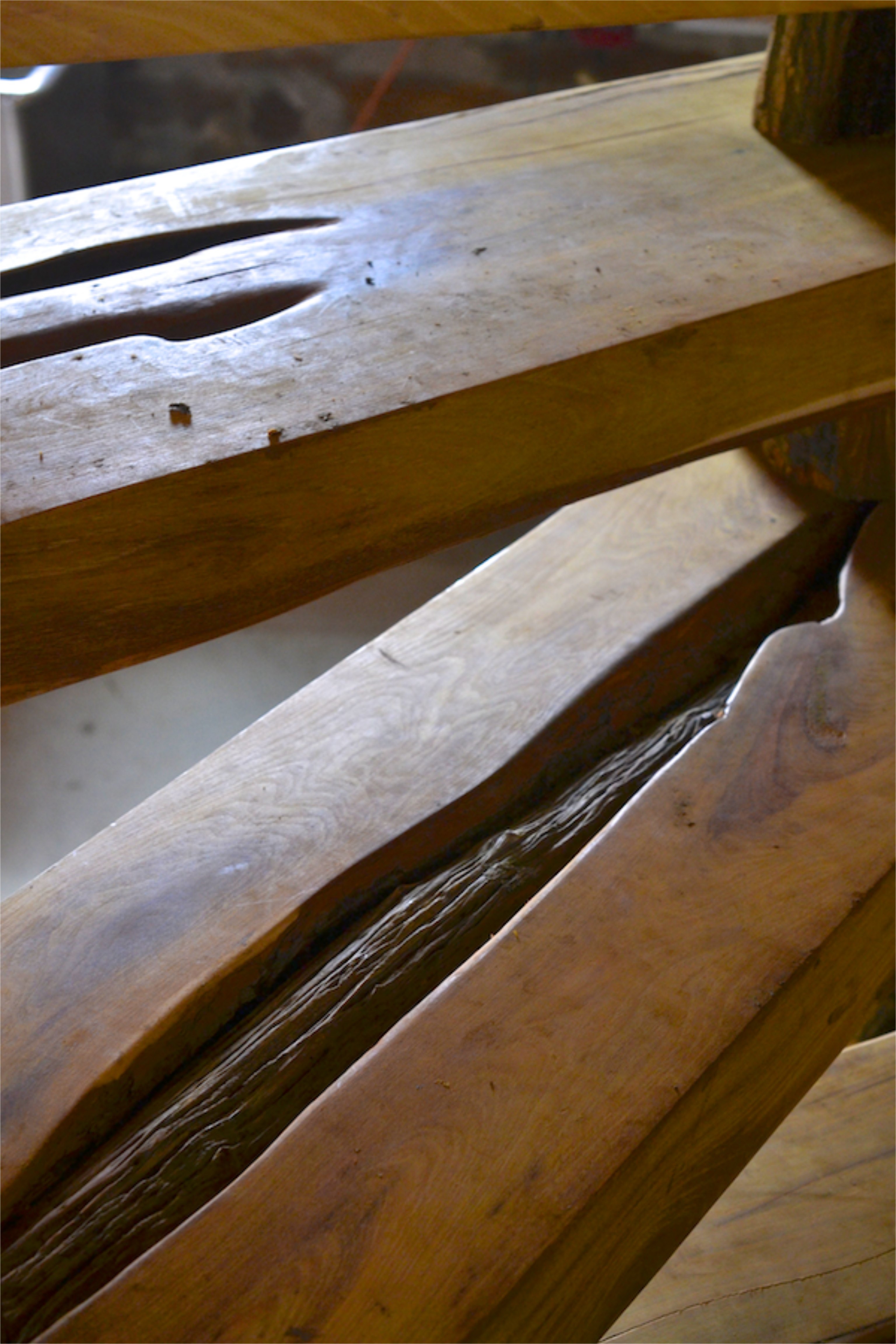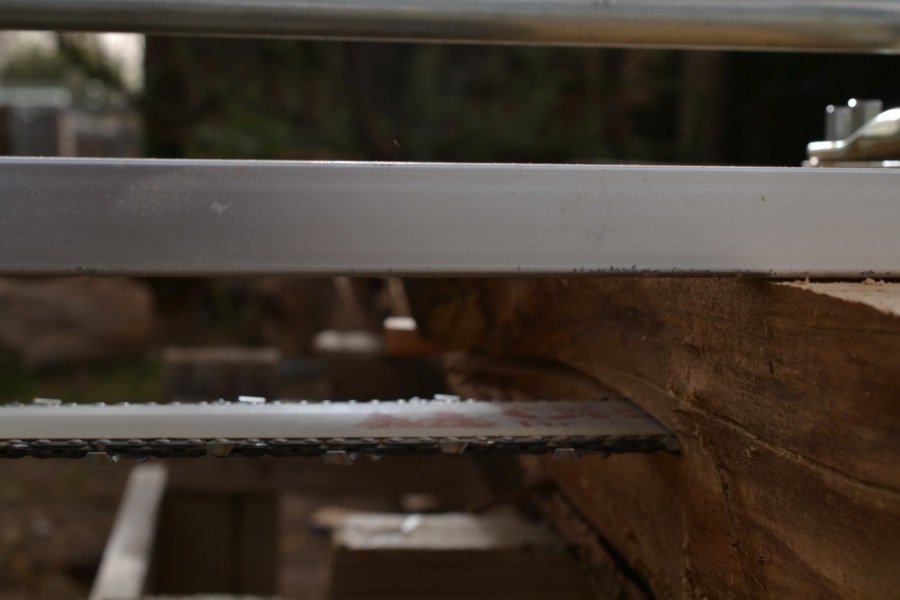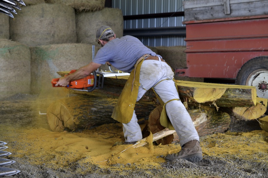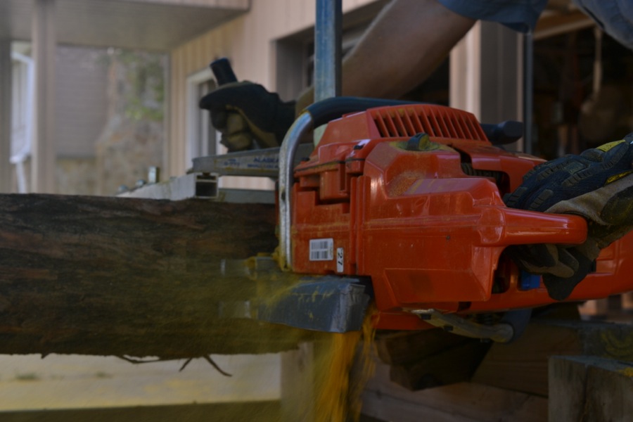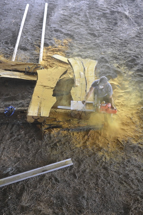 Using the “beam-cutter” to rip the slab into a six inch square timber