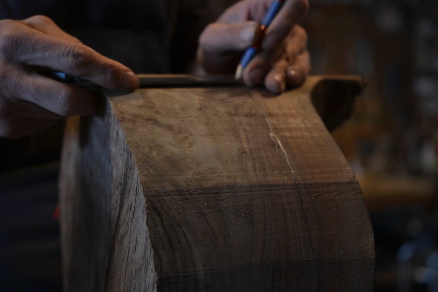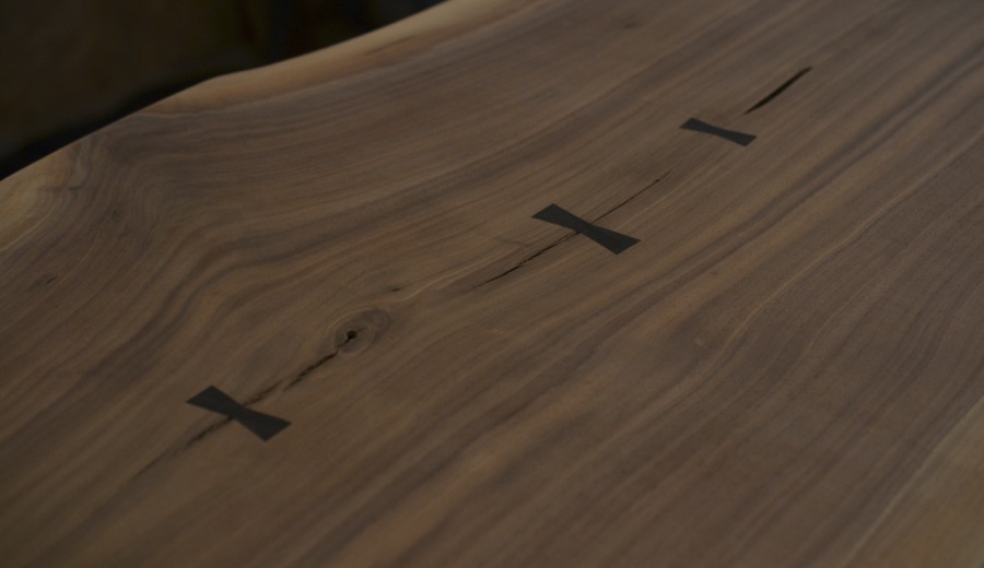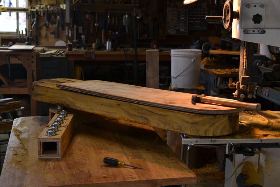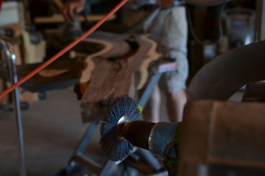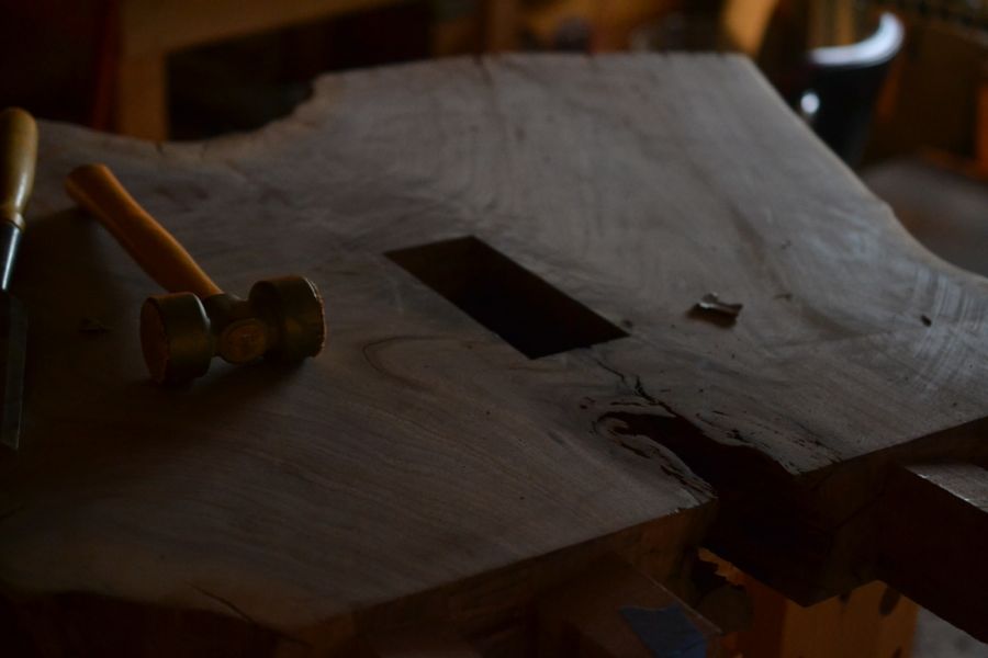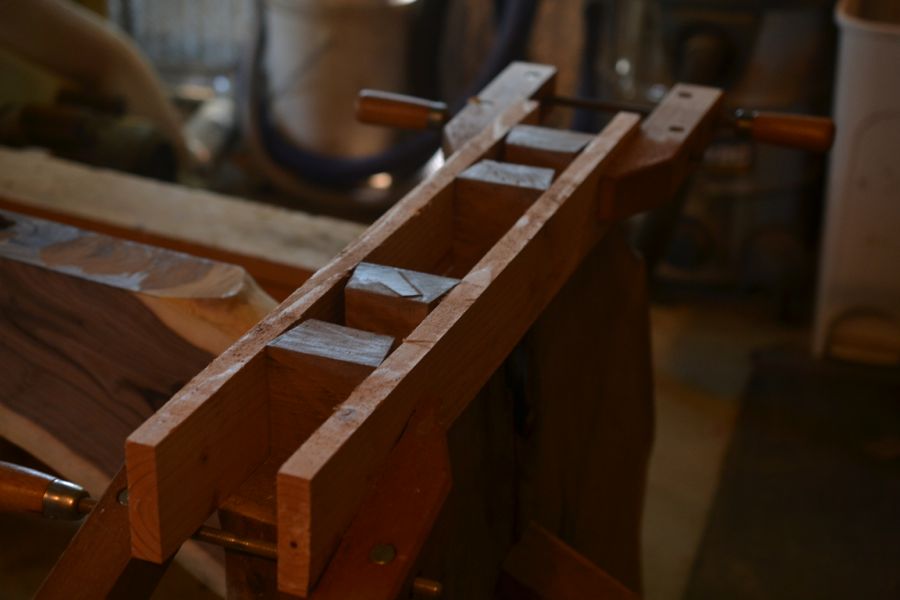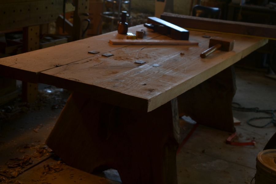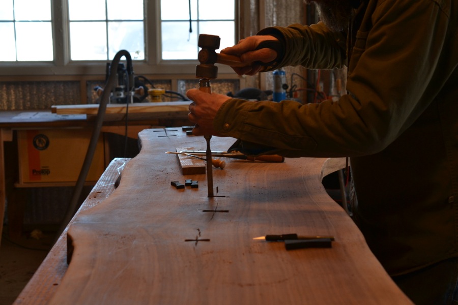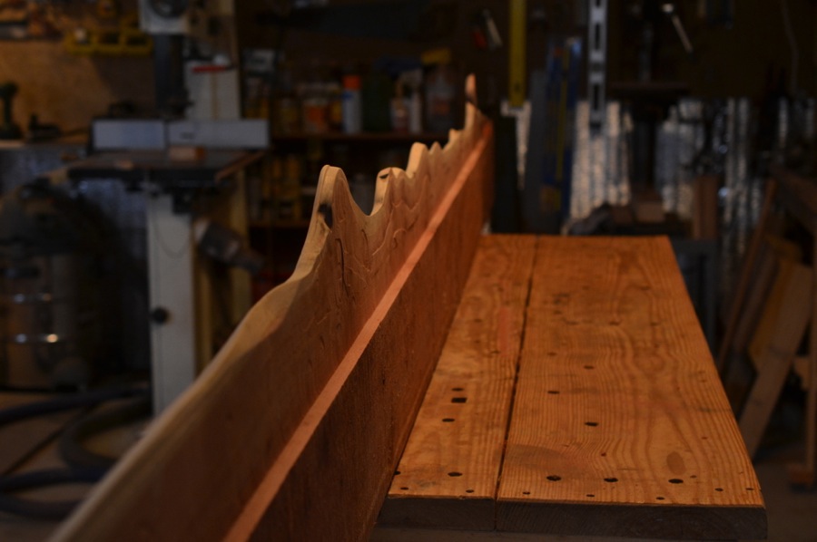The six and a half inch thick, 13 foot long walnut slab filled the shop as it came from the chainsaw mill.