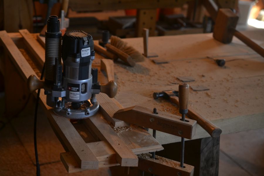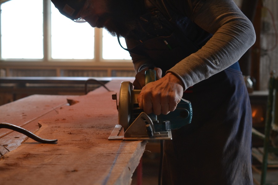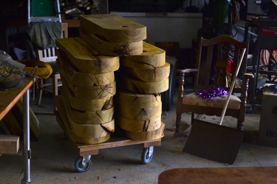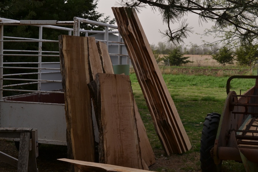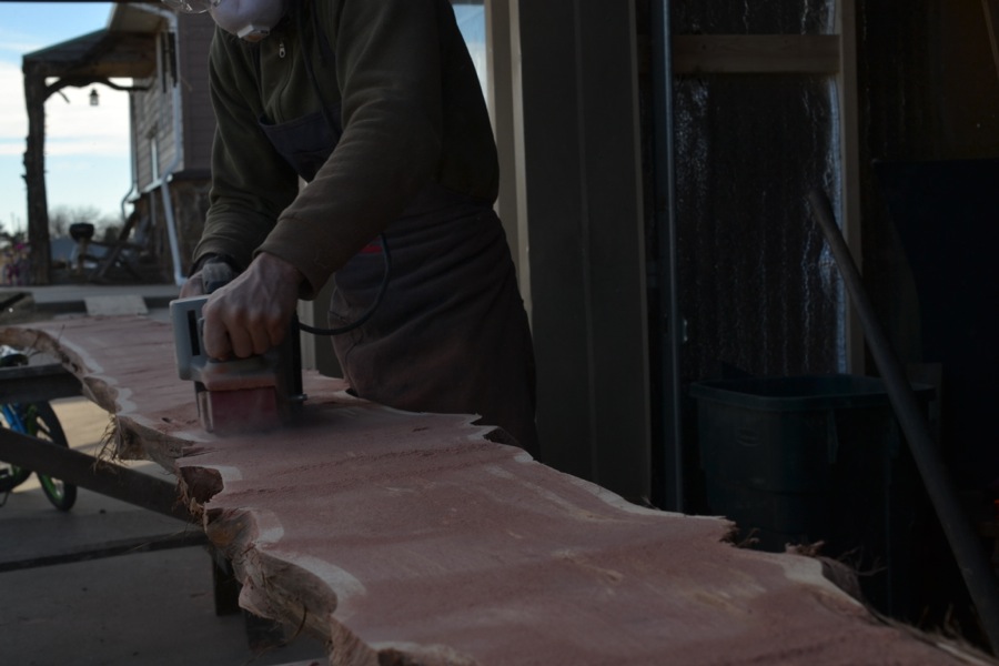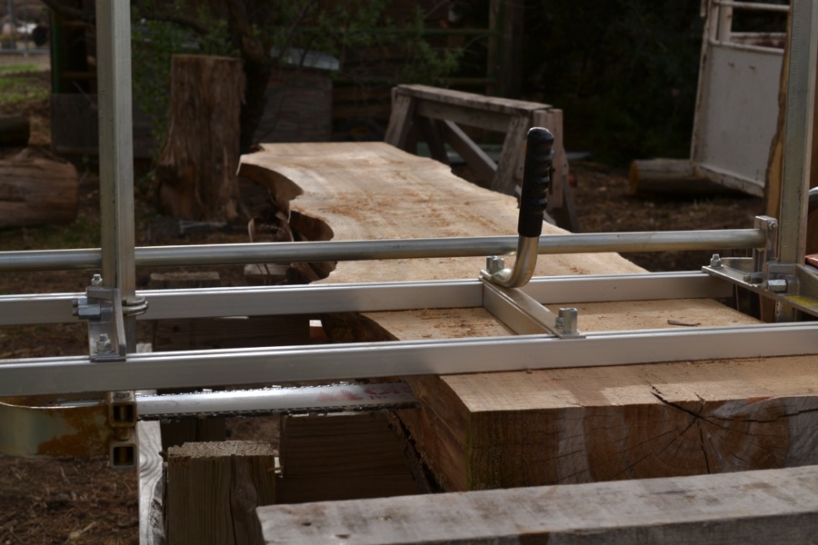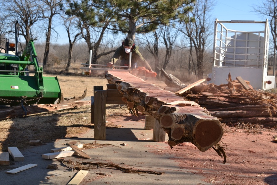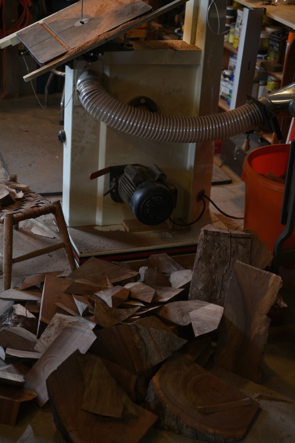 Working for and in collaboration with my friend, Cody, we have been preparing waney-edged planks and slabs of eastern red cedar and black walnut for loft and stair railings and countertops, while making much fodder for the compost pile.