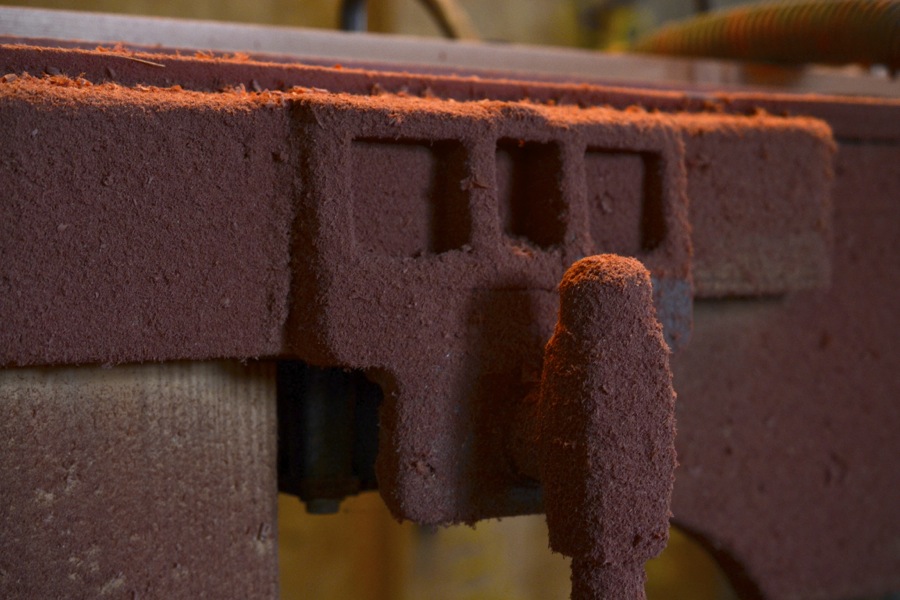 Pulling the saw at the end of the cut to save the last bit of slab for the corbels