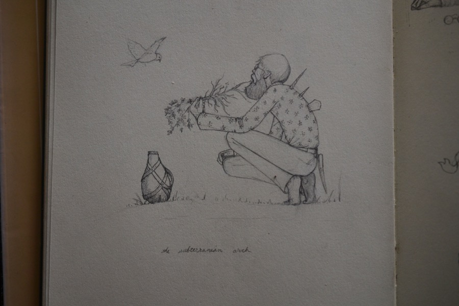When drawing becomes a prayer, the image becomes a repository for the questions and thoughts offered to God, which then settle on the page. At first like a fine dust. Then into ridges and furrows. Then into fields and gardens.