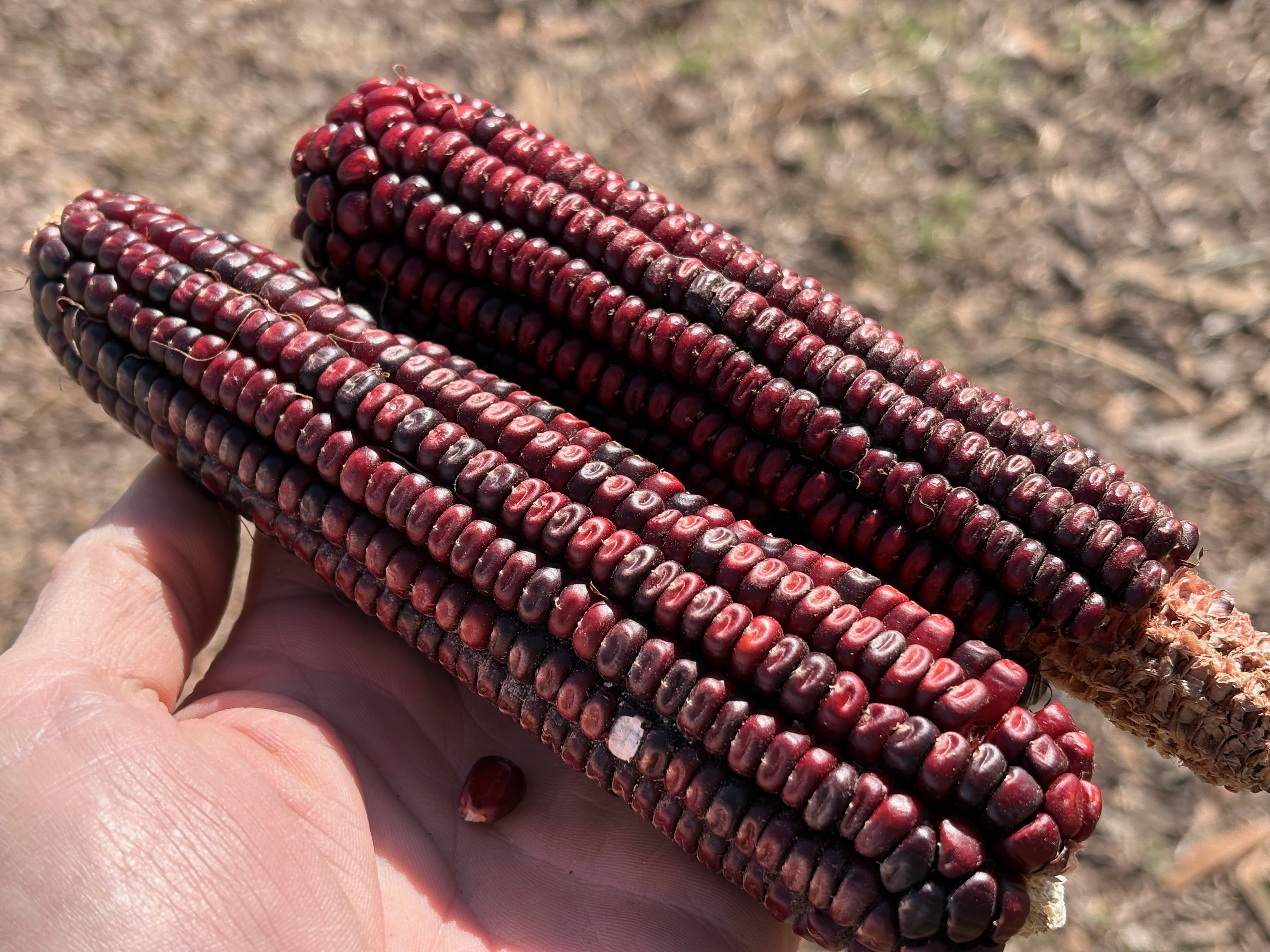 As one resistant of labels, with equal parts zealous interior violence, comic irony, and a dash of cowardice, I walked the fields of this farm land counting my ewes and does, counting the rams and bucks, counting the yearlings, the lambs and the kids and the wethers. It is warm for February. I walk the crop land; the recent snow having melted in the winter sun. Walking through the corn stubble I stop to retrieve, from the earth, two large ears of “bloody butcher” corn missed by the corn picker last fall, missed also by the gleaning deer, raccoon, crows and the like, lying perfect and impervious to the recent moisture until the wet warmth of spring softens their hardness: two glorious ears. I contemplate my relationship to that particular variety of dent corn and through it, the land, and through it to Everything. I consider the blood-red kernels, possessed of this inner light, very much like jewels, but of a different telos. I encounter in there a bewildering and univocal intimacy, and before knowing, and without thinking I fall down into it.