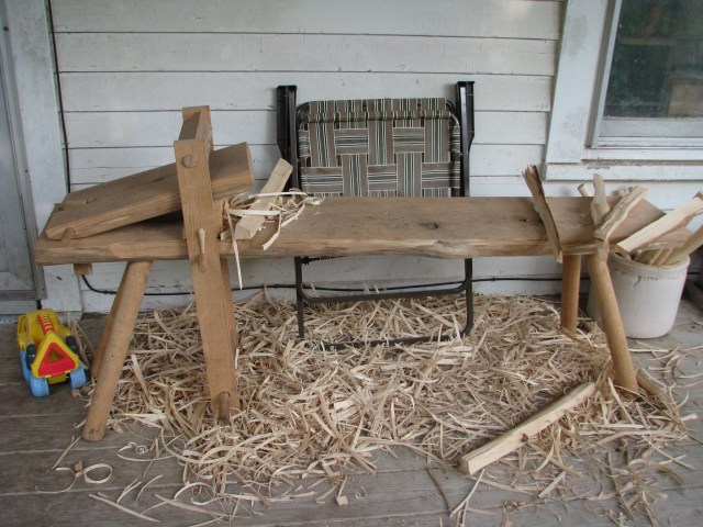A shaving horse for preparing pieces for the lathe and for finish work in its own right. It is made from part of a red oak that I milled last fall.