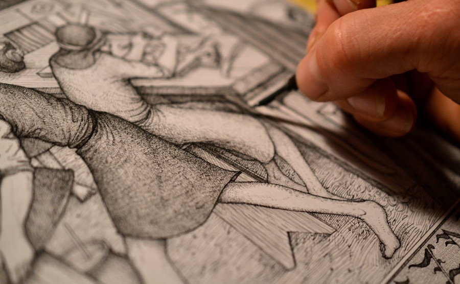 The Spiritual Mechanics of Labor and Rest, ink drawing