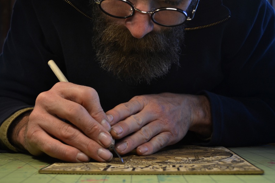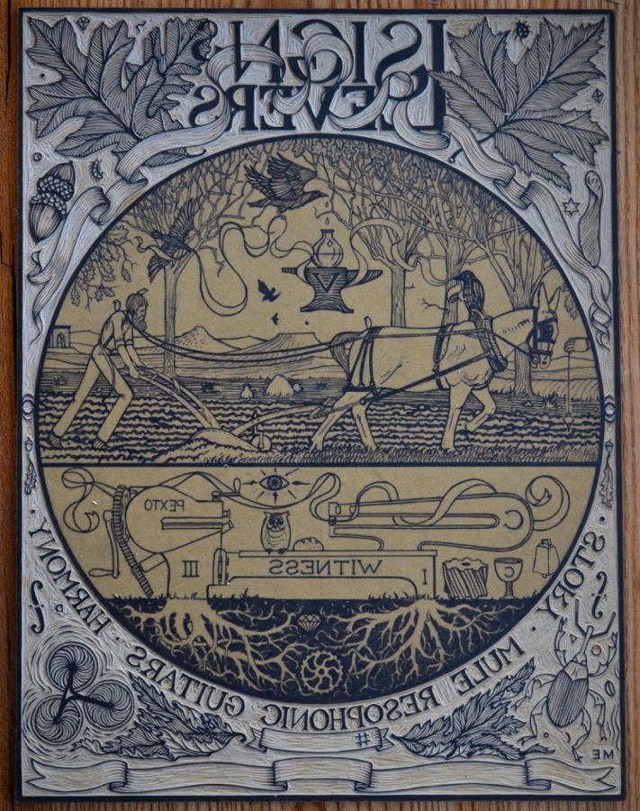 These images here, are a divergence in a way, in that, they are the mixture of my expression and visual language with the story and purpose of two other entities. The first of those is Matt Eich of Mule Resophonic Guitars. He has been building these beautifully crafted and, by all accounts, almost magically sounding guitars for five years now. The resulting print will be the certificate of authenticity that will be presented with every instrument that he sells. Matt is passionate about story and building rich relationships with his customers, and he invests personal expression into every instrument. His sense of story has been woven together with mine here, I hope.