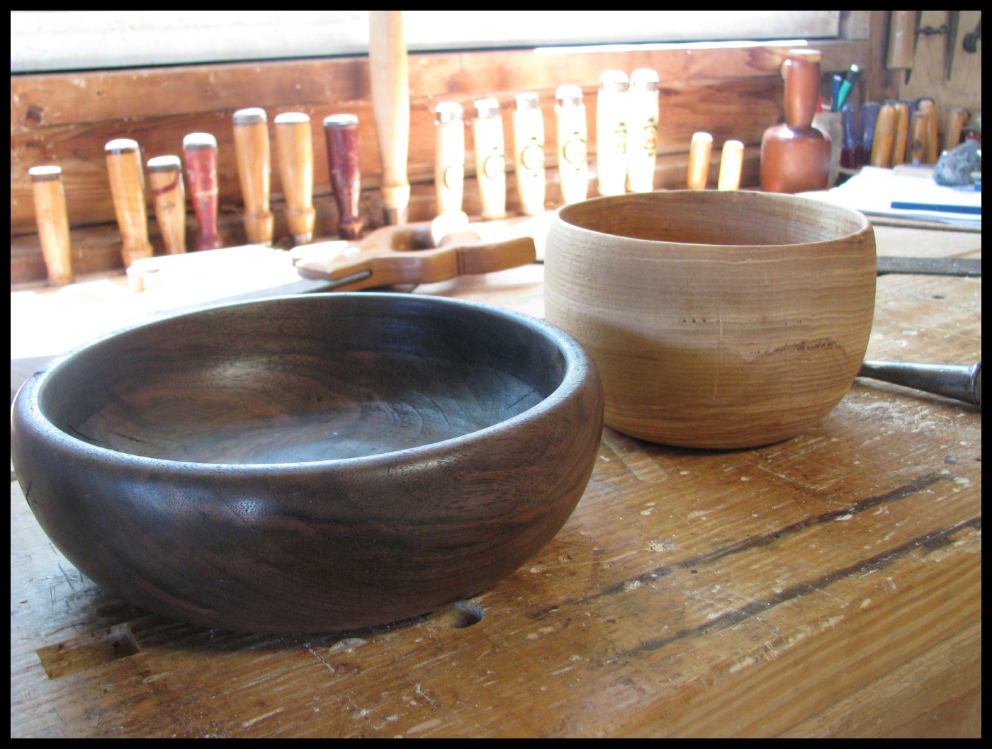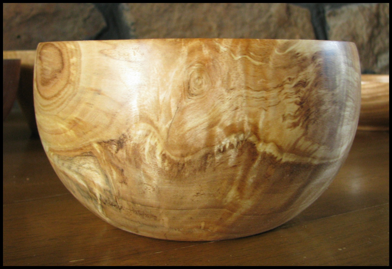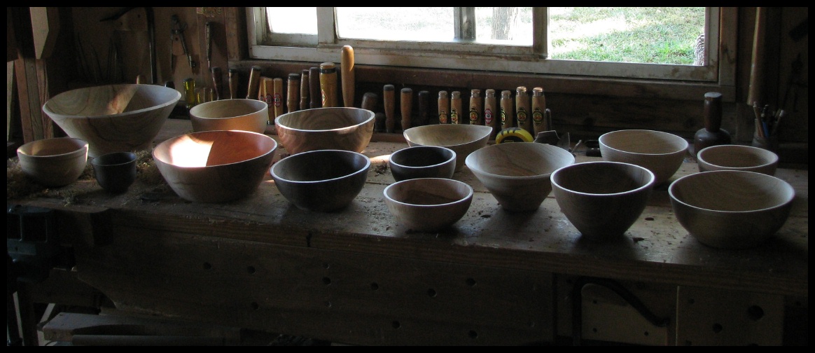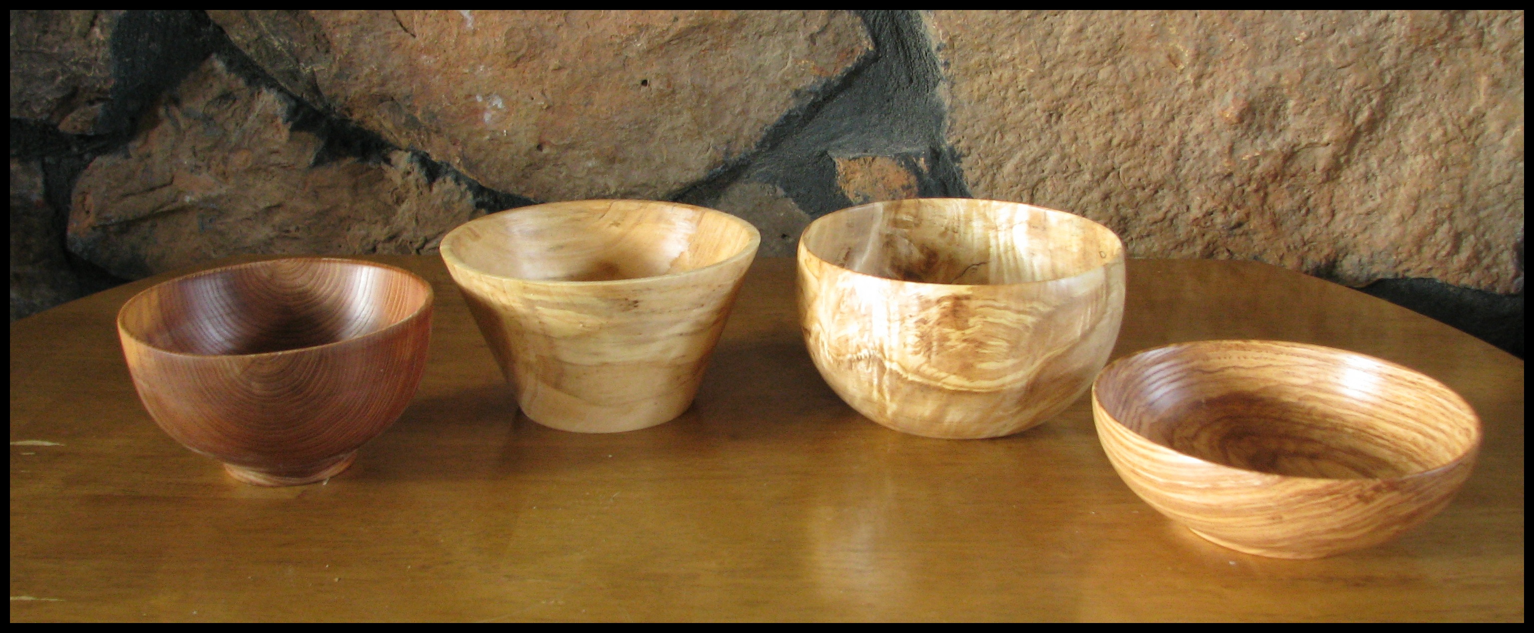 Five bowls turned from part of a salvaged Ash tree from Peabody, Kansas. The tree was well over one hundred years old and was nearly five feet in diameter. Most of it we milled into lumber but some was set aside for making wooden bowls. It is a humbling and awe-filled experience getting to work with material from such a being as was this tree.