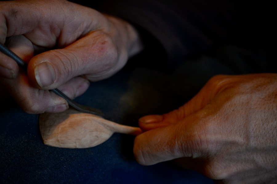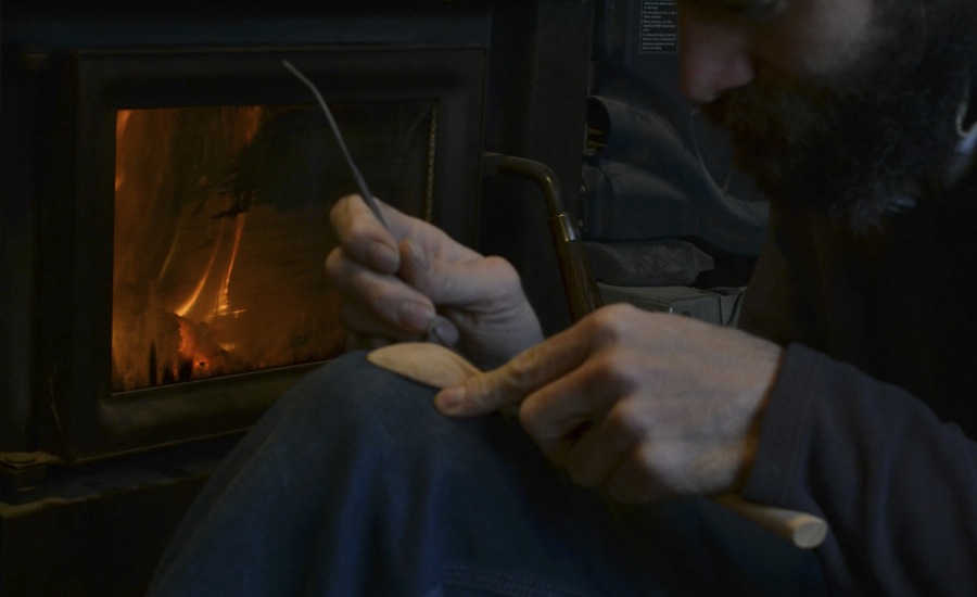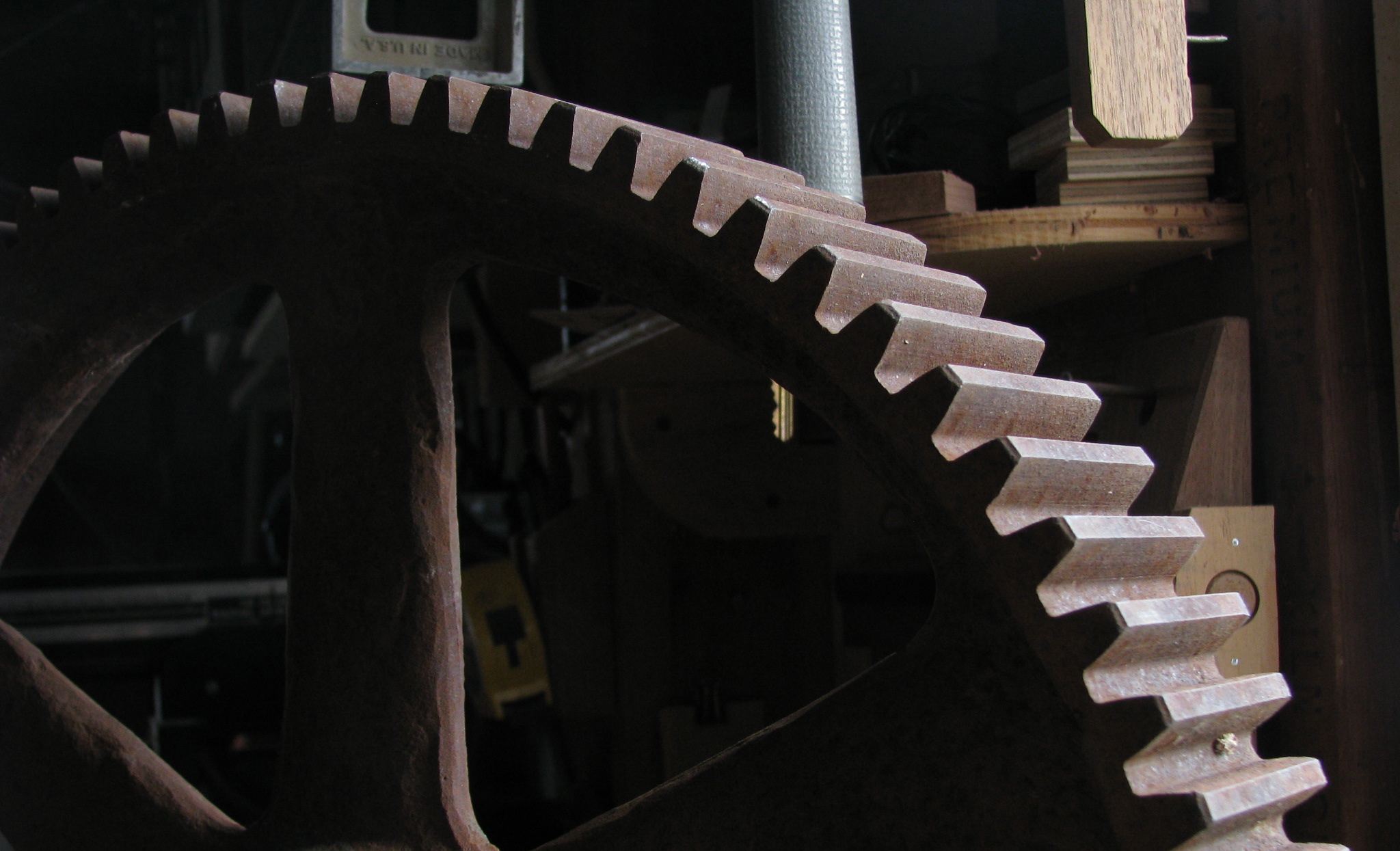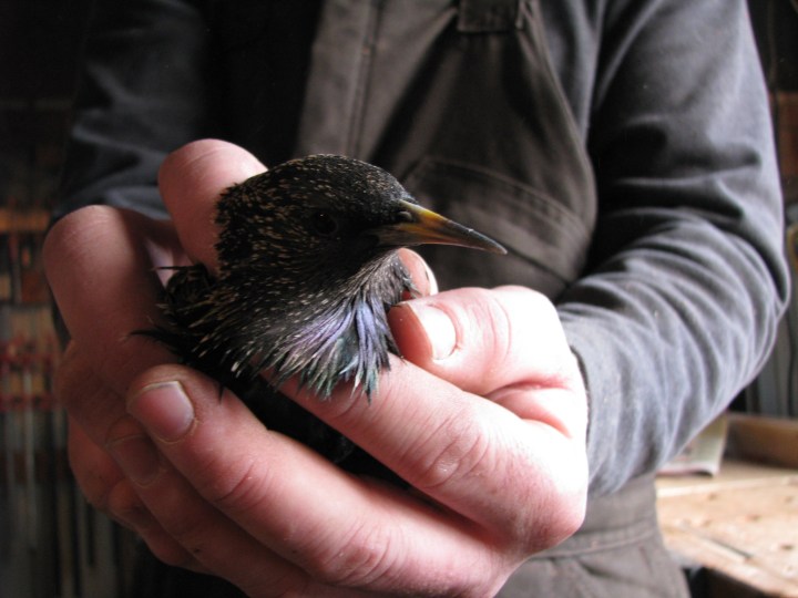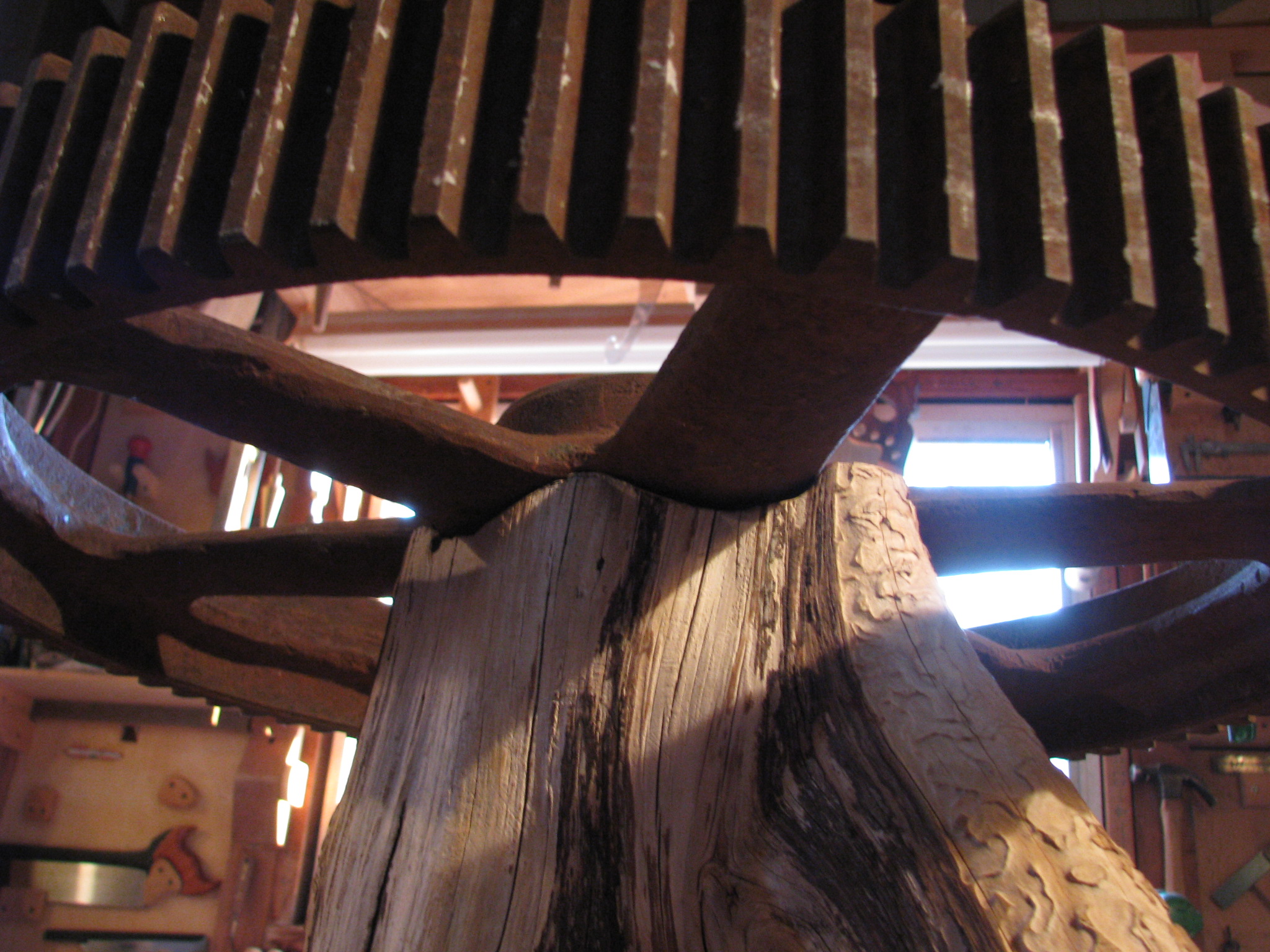 In The Shop (Accidental Tourist) rescued starling; walnut and ash candlesticks; neighbor’s gear and cedar table project