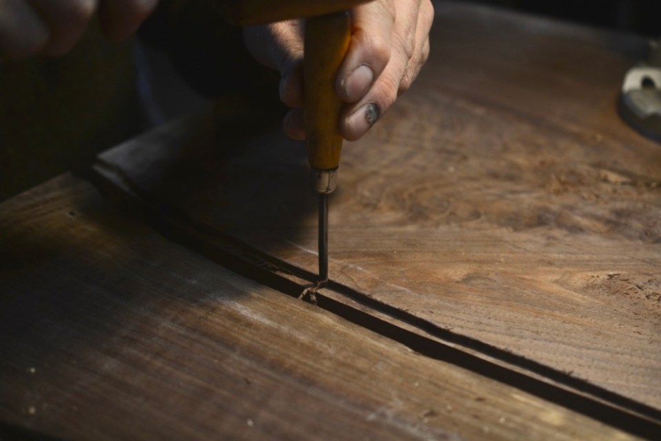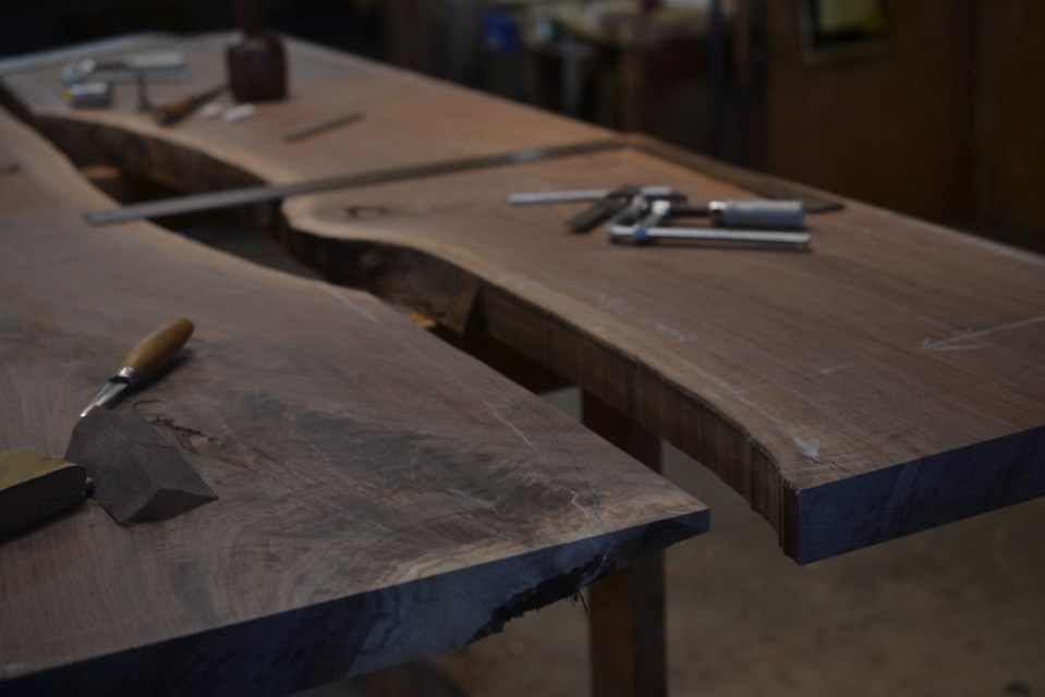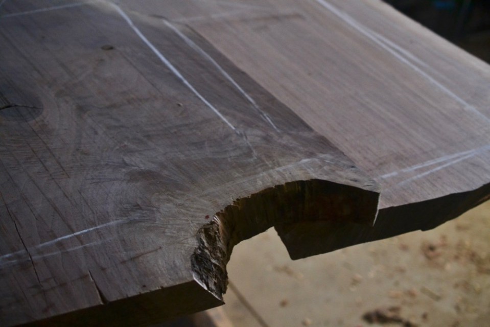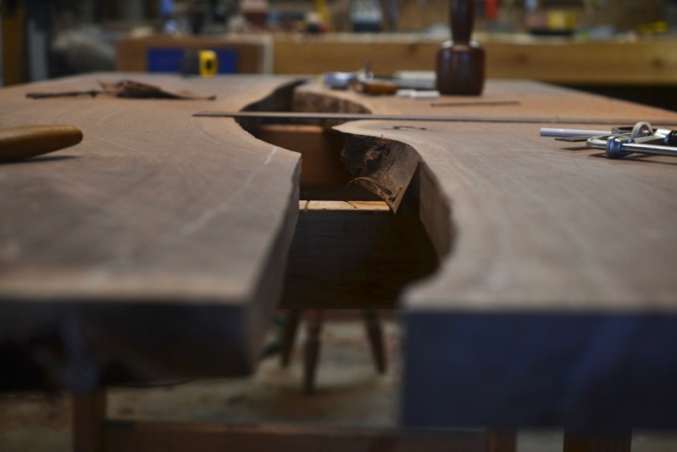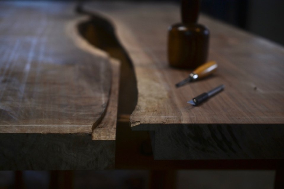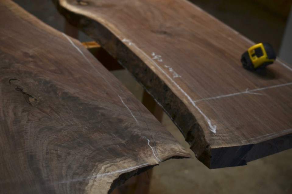 The discovery of the life within the wood and the relationships they form is exciting to uncover. The early decisions are heavy. Every other act in the process is a response to these chalk marks as they try to hear and echo this walnut tree’s voice.