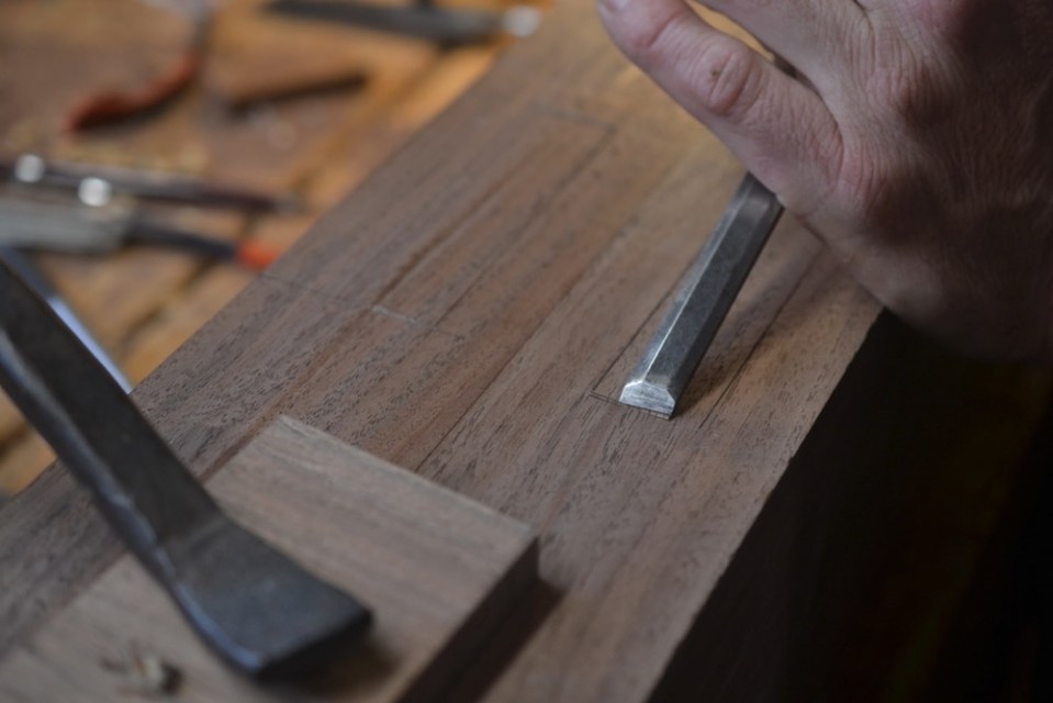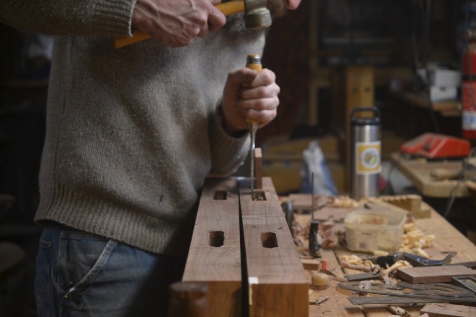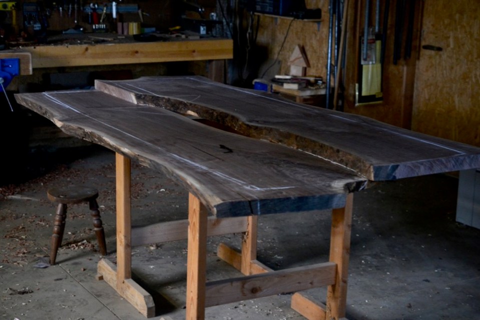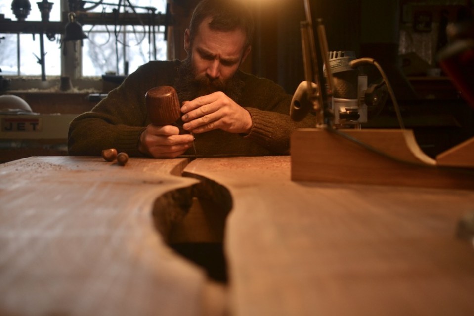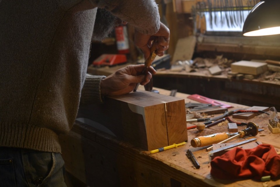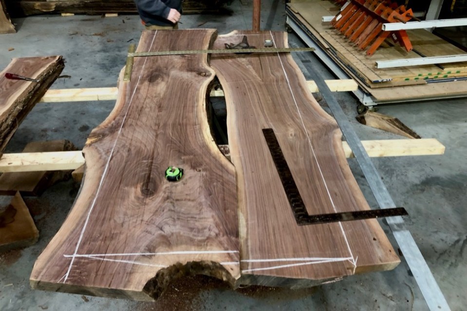 The discovery of the life within the wood and the relationships they form is exciting to uncover. The early decisions are heavy. Every other act in the process is a response to these chalk marks as they try to hear and echo this walnut tree’s voice.
