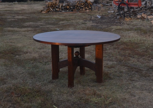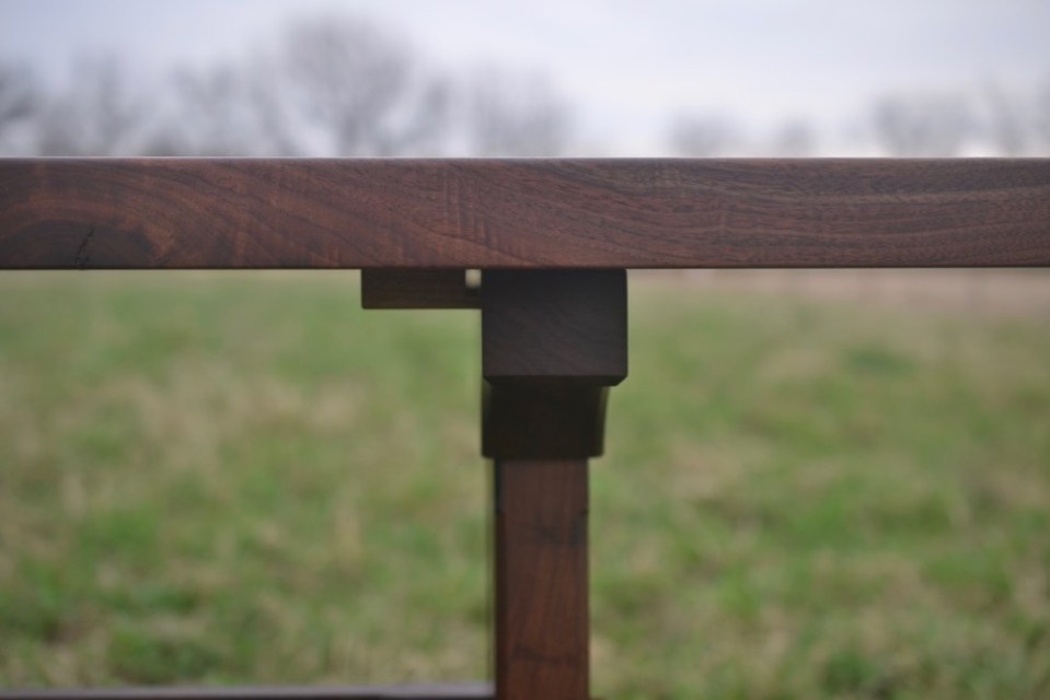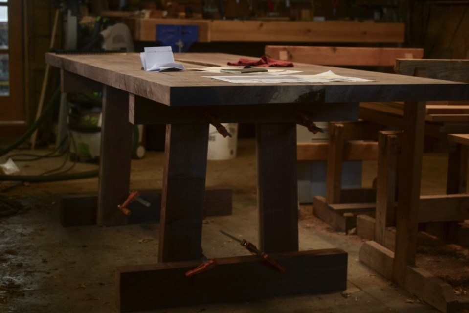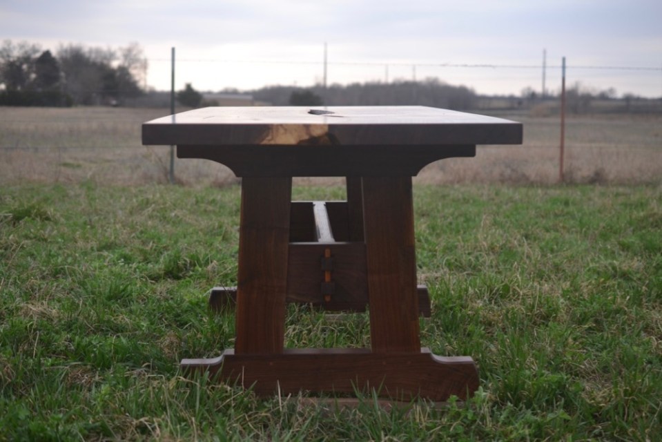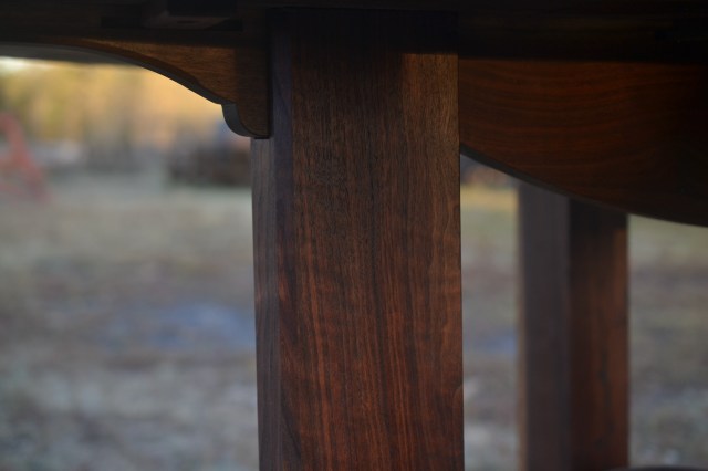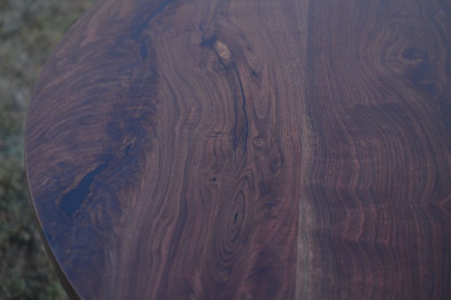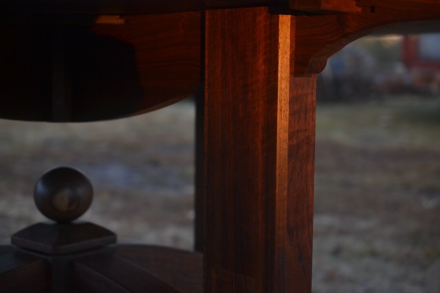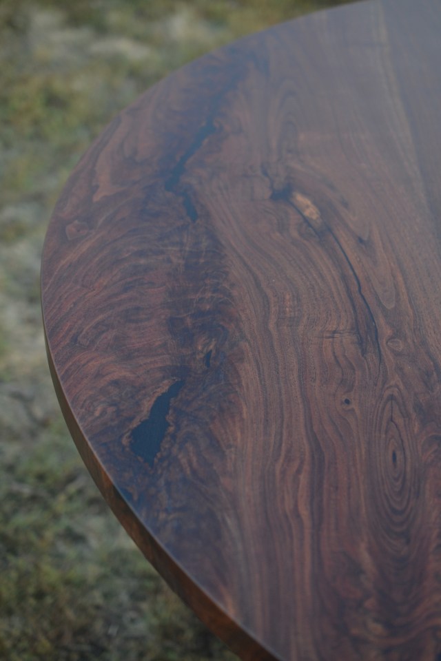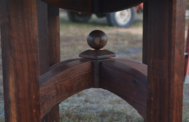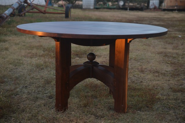 I built this round walnut table for a young family over the summer and into the fall. The base is mortise and tenon. I hoped for it to carry some of the feeling of the vaulted interior of a timber framed barn. The wood for the base came from gun stock maker in Wichita who gave me some timber from his stock before he passed away. The wood for the top was harvested from my friend’s land near Fall River, Kansas.