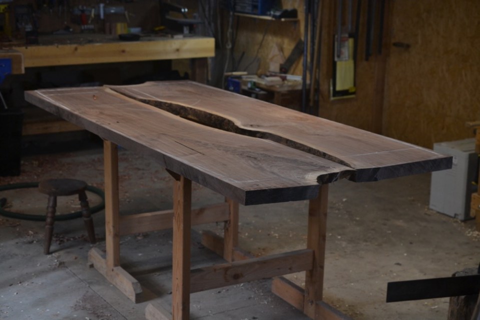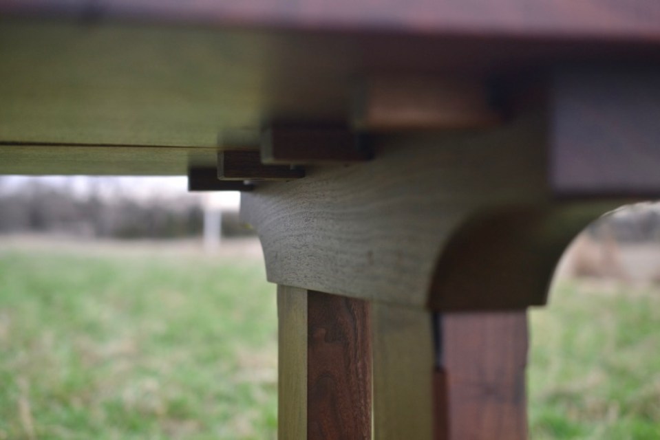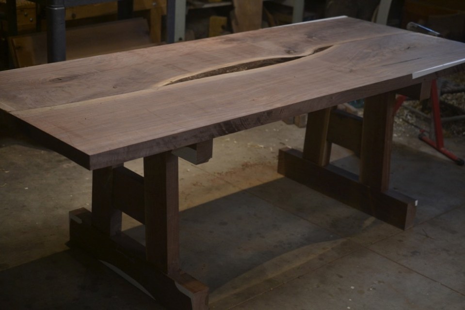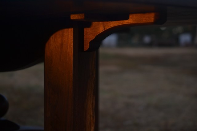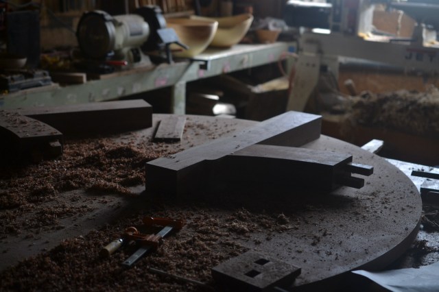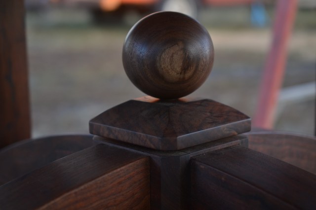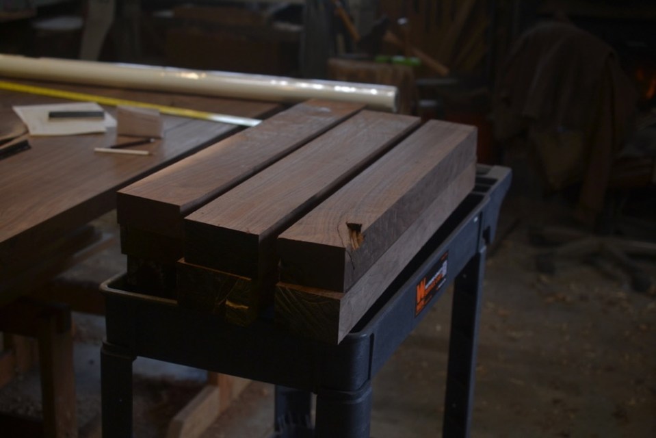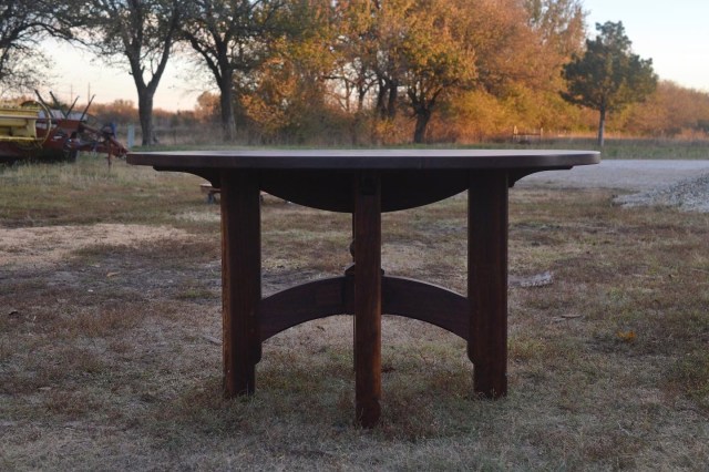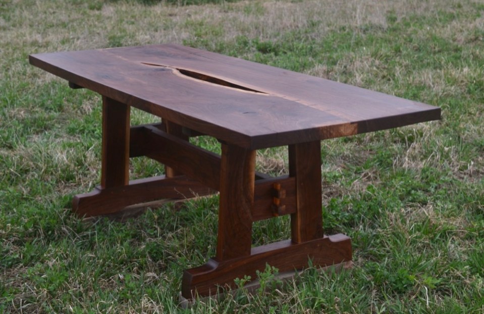 I built this round walnut table for a young family over the summer and into the fall. The base is mortise and tenon. I hoped for it to carry some of the feeling of the vaulted interior of a timber framed barn. The wood for the base came from gun stock maker in Wichita who gave me some timber from his stock before he passed away. The wood for the top was harvested from my friend’s land near Fall River, Kansas.