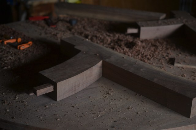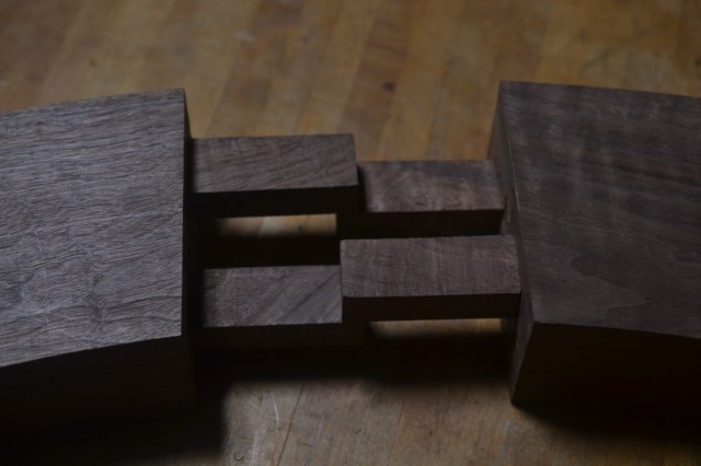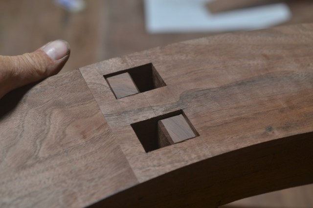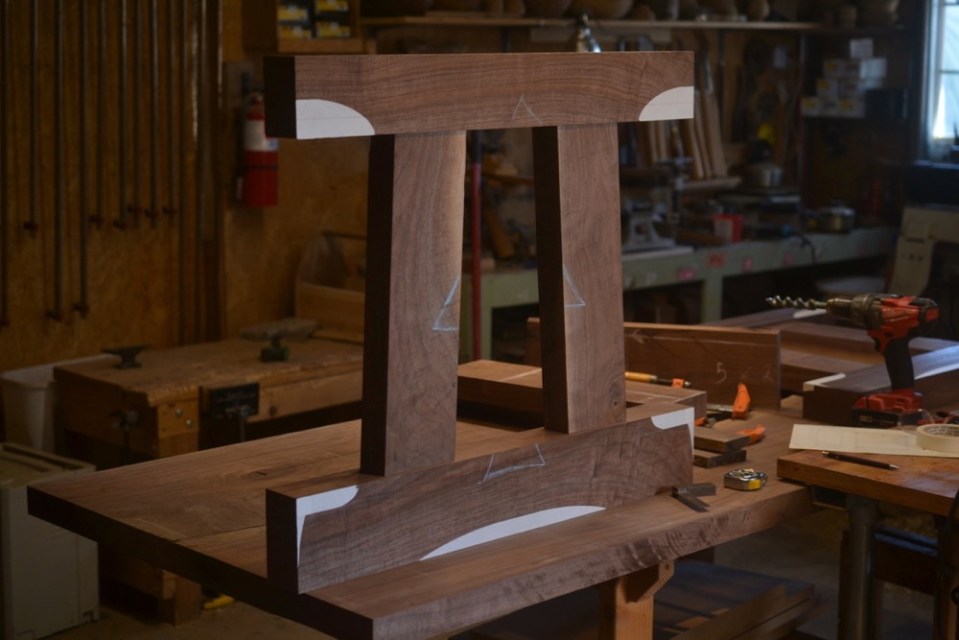 The last bit of joinery for the individual trestles is the horizontal rail completing the “H” form, which will eventually carry the longer rail that will join the two trestles together.