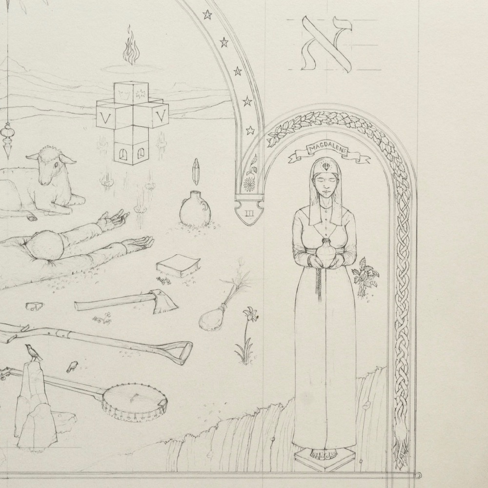 Spirit and Truth, Labor and Rest, 18″ x 12″, graphite on papercenter detaildetail of Mary MagdaleneDetail of the Martyr, Antipas