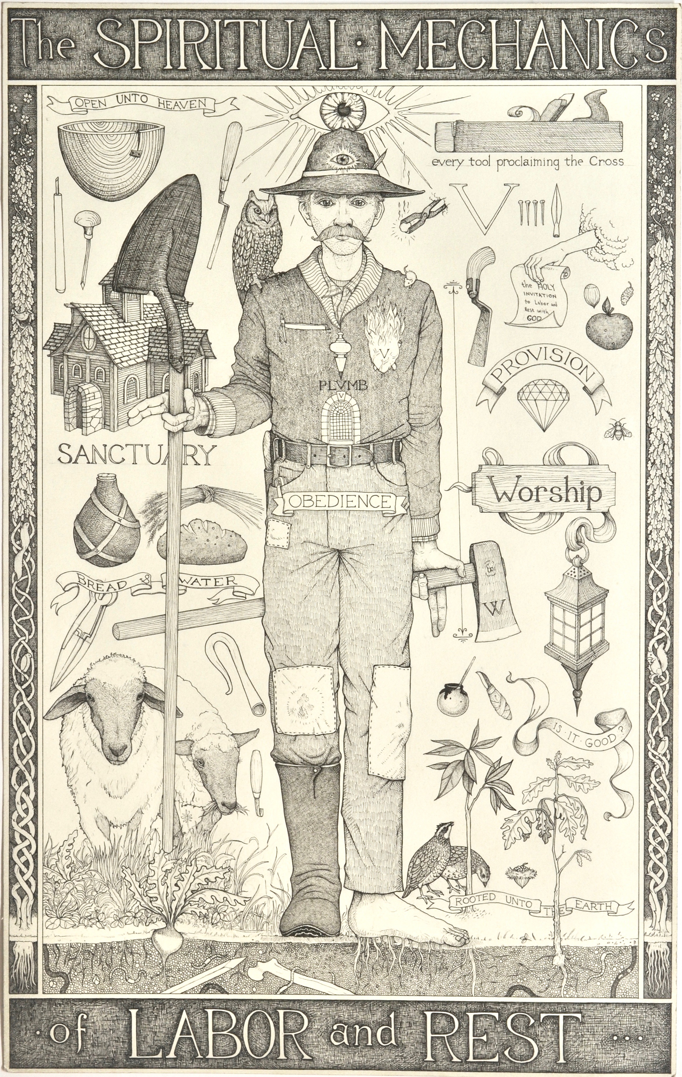 The Spiritual Mechanics of Labor and Rest, 12″x18″, ink on paper