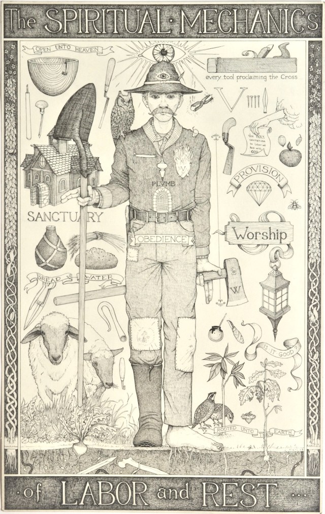 Is labor a sacrament? The invitation of the Eighth Day? A sacred collaboration with the living God? I can’t help but to note that the call to labor in the garden came before the curse of toil. I am certain that labor is about more than just earning my bread. There is something deeper there, not just for the artist, but for the ditch digger and the roofer, the farmer and the nurse. “Whatever you think, it’s more than that…” ISB.