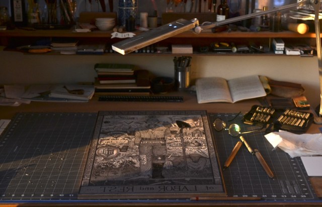 Concerning the invitation to occupy the sacred rhythm of labor and rest and to engage the “resistant materials” not for provision first, but for relationship, for worship, for knowing God. I’ll share more on this when the print is done. The block is about 75% carved. I hope to be able to start making some proofs of the image in two or three weeks.
