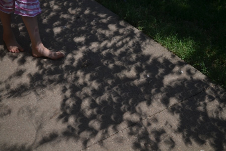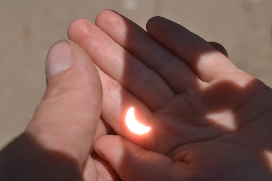 the image of the solar eclipse projected through on half of pair of binoculars proved to be the most successful of viewing contraptions