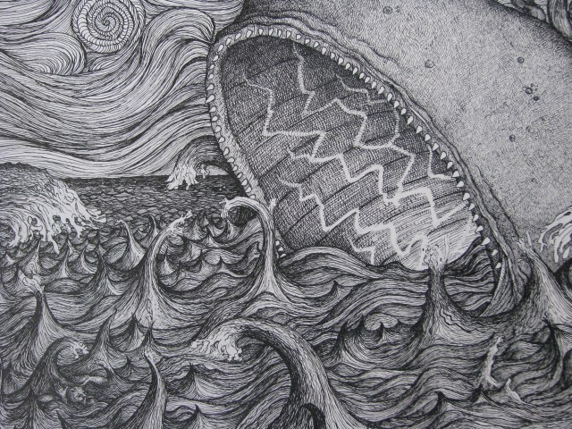 A painting of Jonah and the Gourd Vine, from 1999, painted on a mdf panel with mahogany veneer. Done while I was still in school, I had previously omitted it from the archives on this blog. It is in the same line of the paintings I am now doing- and have been doing since around 1999, so it now seems appropriate to add this and a few others from the last few semesters of my schooling to the paintings archive page.