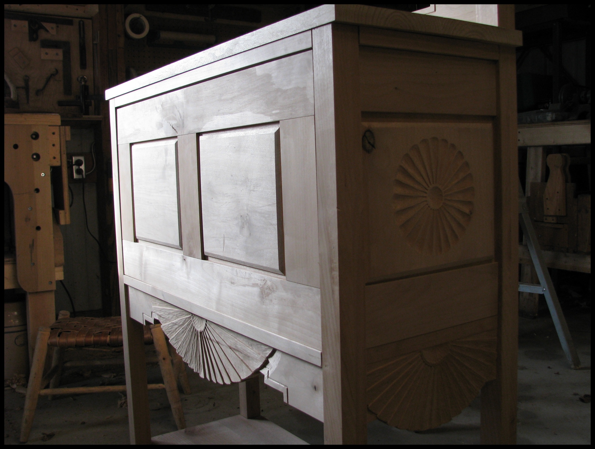 One of the trees we used for this came from the Walnut River valley near Augusta, Kansas, where it was uprooted and set for a number of years suspended by its roots and crowns. My personal experience suggests this process of drying “in the log”lends a quality to the color- different to other air drying methods. Another walnut tree we used came from Cody’s land in a draw on the county line between Greenwood and Elk counties. A third came from a farm near Winfield, KS- on the banks of the Arkansas River- where we scavenged the rejected leavings of a logging operation. All of these trees have peculiar and noble stories and voices, as expressions of a land and of its mineral and even spiritual atmosphere.