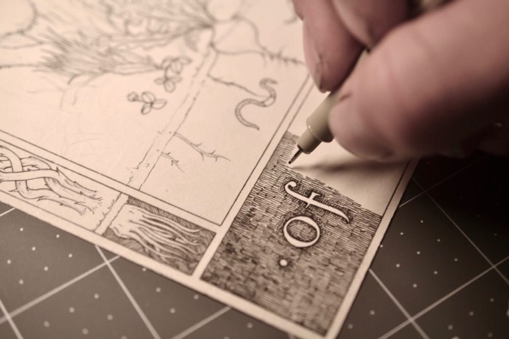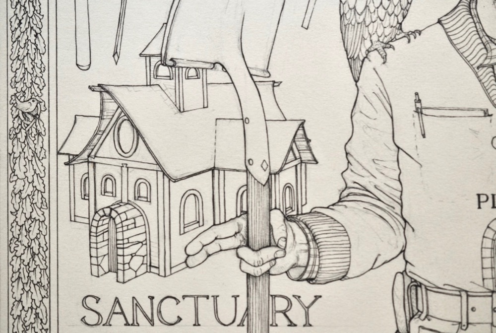 This drawing, a work in progress, represents an effort to illustrate and pray into the swirling cloud of thoughts, feelings and impressions I have surrounding the deep nature of work. It is something continually at the front of my consciousness. I think about the invitation to Adam and Eve on the eighth day- to enter into creation and labor as an act of cooperation with the Divine Creator. I often think that work is more than just earning provision. I wonder even if labor could be a sacrament. Could the labor we undertake from day to day be like Archimedes’ Lever, positioned to move something really big? Is it doing more than our perspective allows us to see? My questions are shaped by a belief that the spiritual reality of the Universe is more vast and more real than the realm of our physical perceptions and measurements. More specifically, is my conviction of a deeply interconnected relationship between everything we see and do in a physical sense with the unimagined unseen vastness of God’s goodness. I believe creation and our place in it is, in a manner of speaking, a technology God gave us to engage the invitation to know and worship Him. It was shattered almost immediately, it would seem, but through the finished work of the Cross, Christ established reconciliation. (This is not a sermon, nor am I trying to prove anything, its just about a drawing and I’m leaving so much out!)