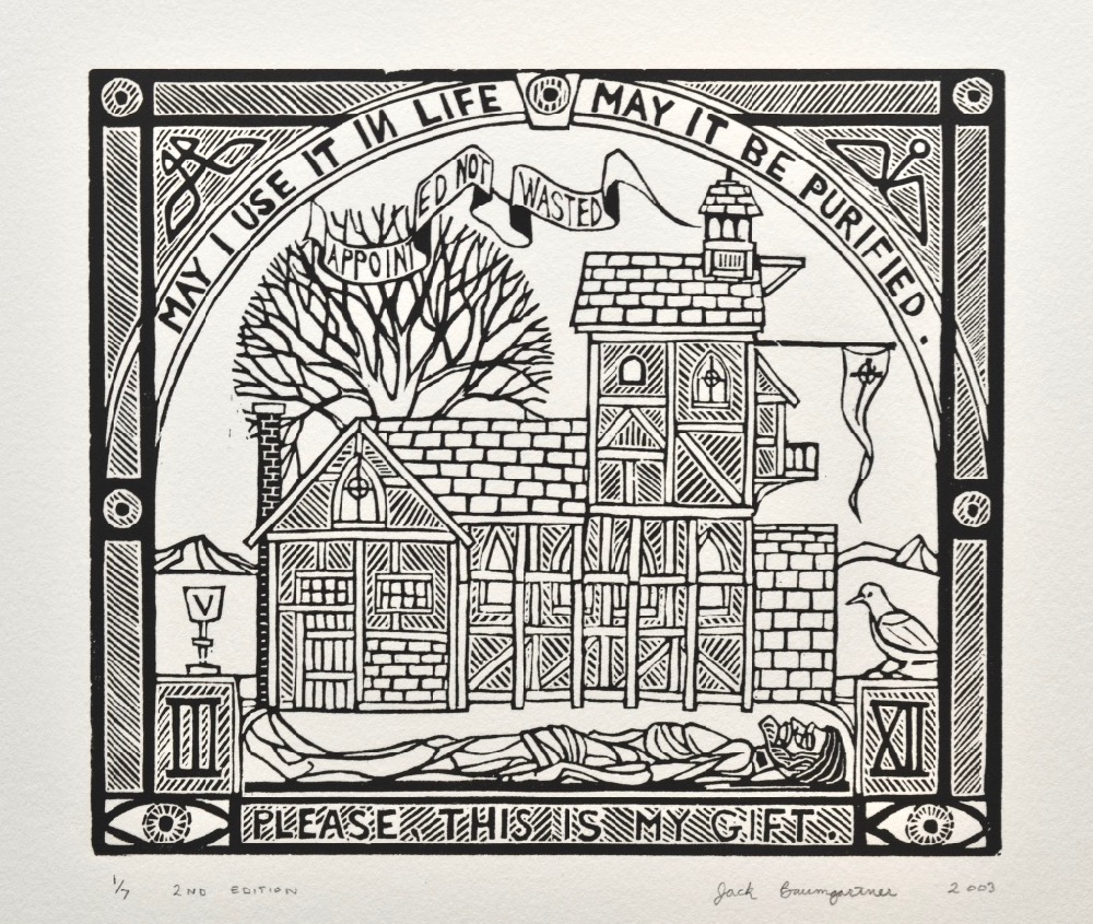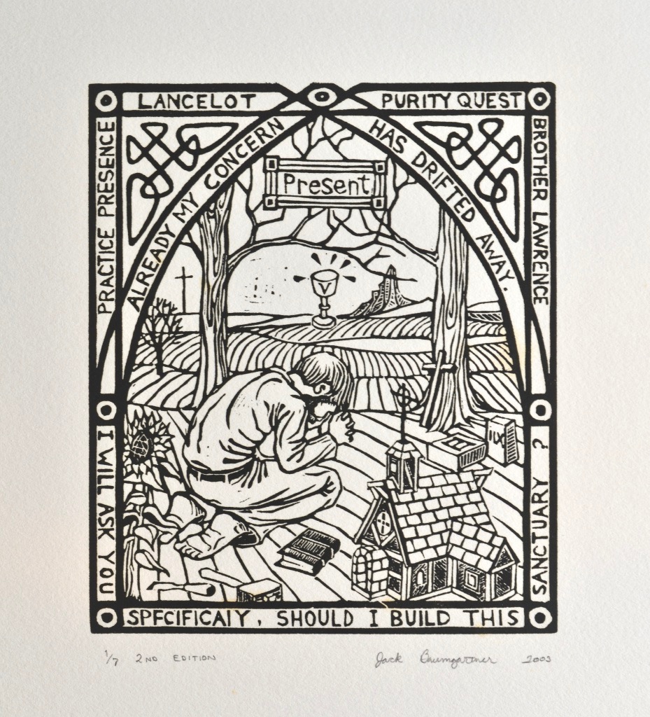 At first this little building was something I wanted to build on my dad’s land, when I was attempting the hermit’s life there. I made drawings of it and multiple block prints functioning as prayers, asking God if it was something I could make. I was truly desperate to build something that mattered, that could bring Him a tangible expression of glory. It has yet to manifest, though I’ve always wondered about the sanctuary as I’ve aged. Was it only a spiritual building? Is it something that He is building me into? Is it my cumulative life’s work? Is it a foolish dream? Idolatry, even? Maybe I need to be older and more experienced to build it? Can I build it now, on my own land?