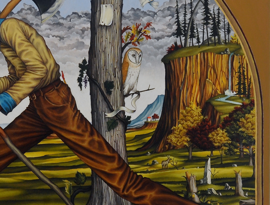 The completion of a painting generally means a decision to stop working on it, otherwise the cycle would never end. This painting, which was begun in October of 2009 reached that generally unheralded milestone of “completion” this fall, 6 years later. Technically, the work is not entirely done, as I have yet to build the frame for it, which, especially for my panel paintings, represent a significant part of the presentation and outer composition. I hope share some of the meaning behind this painting at some future date.