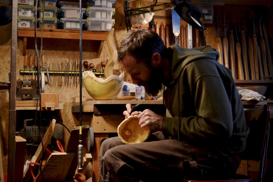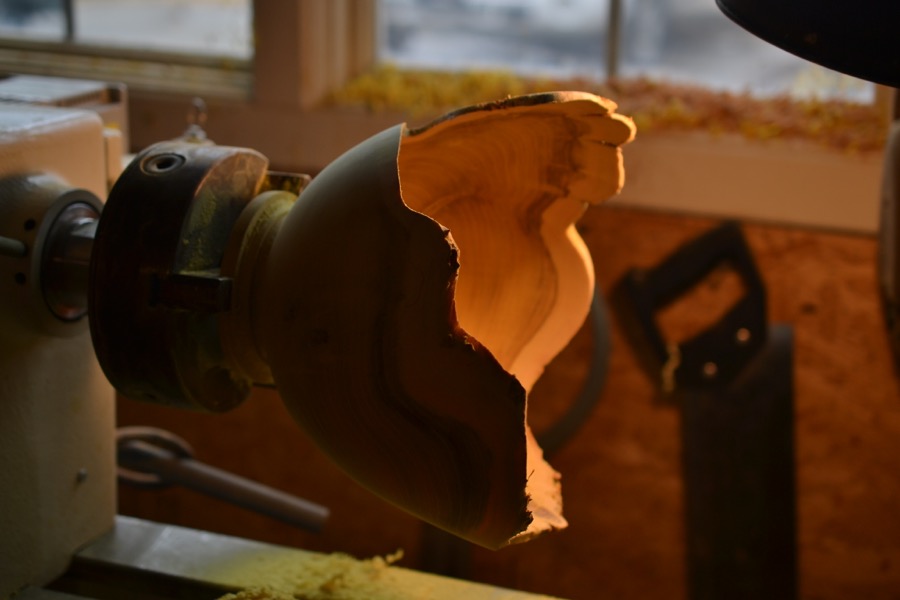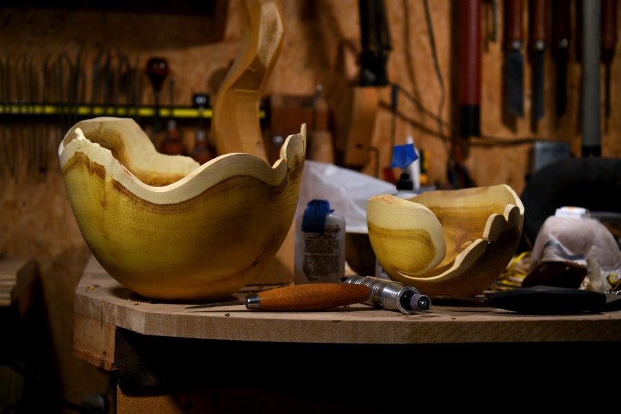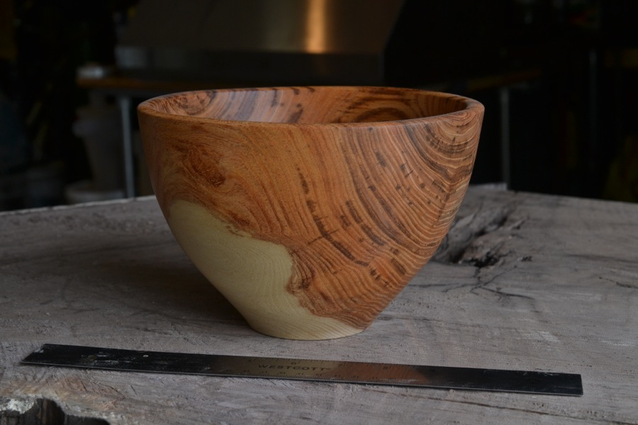 Five bowls turned from part of a salvaged Ash tree from Peabody, Kansas. The tree was well over one hundred years old and was nearly five feet in diameter. Most of it we milled into lumber but some was set aside for making wooden bowls. It is a humbling and awe-filled experience getting to work with material from such a being as was this tree.