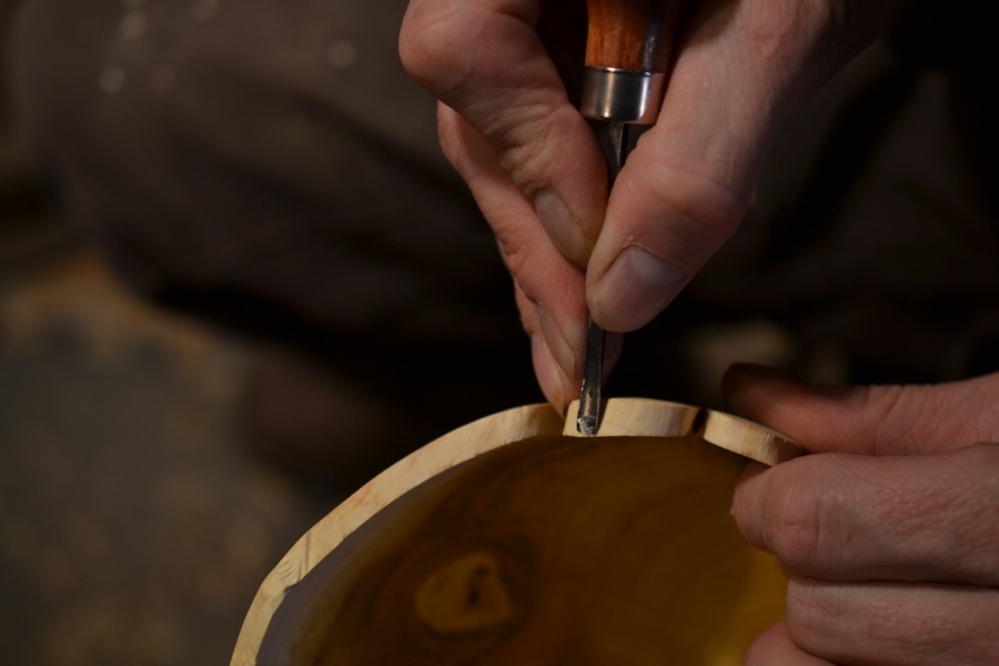 The cup has been waiting for a plate for years. This summer the opportunity came to carve one, and to send them both together to their new home with my friend Robbie Pruitt.